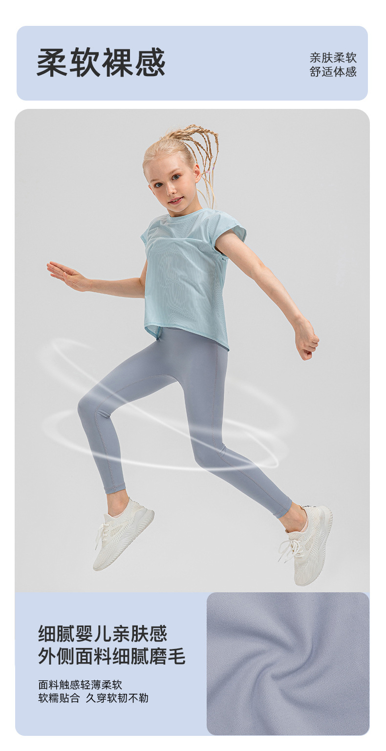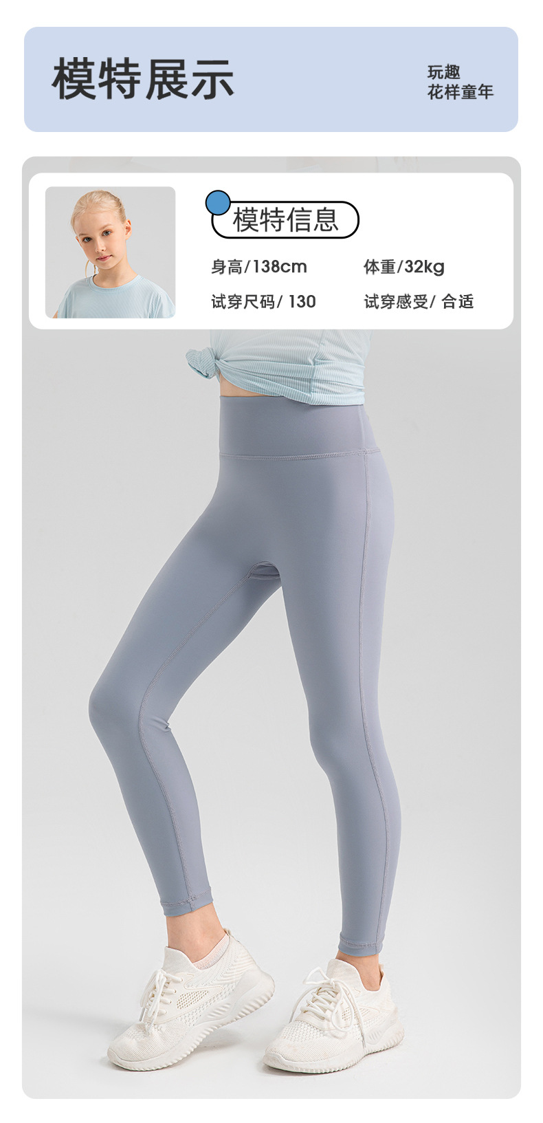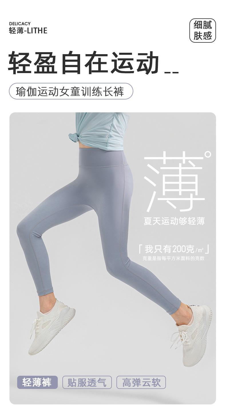 30D Spun Yarn Girls' Summer Light and Breathable Yoga Pants Without Embarrassing Lines, Soft and Skin-Friendly Kidsren's Tight Sports Pants