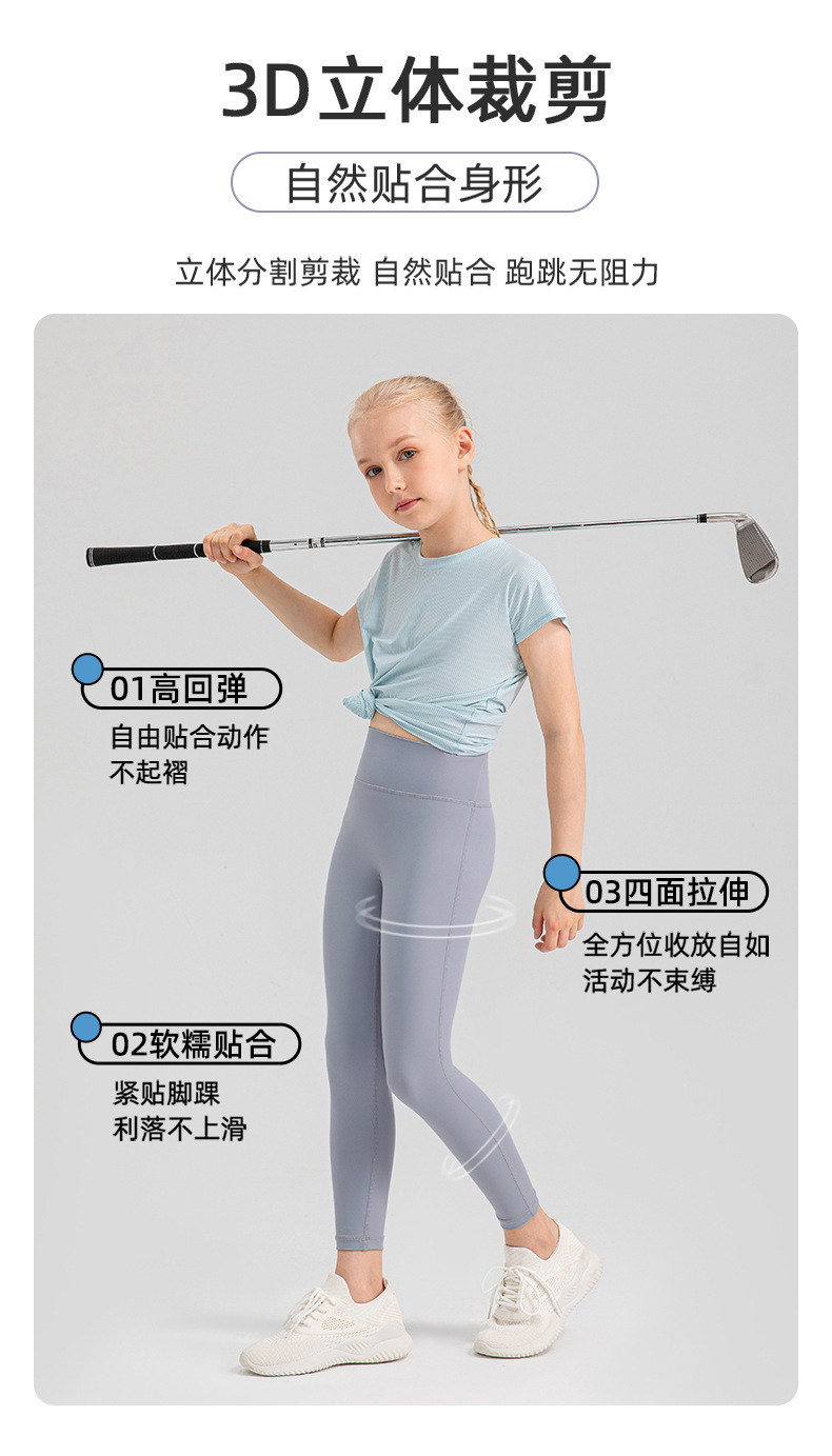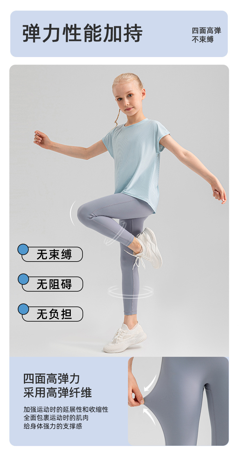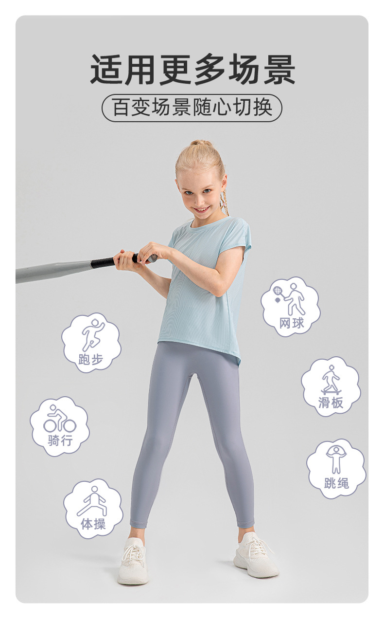 30D Spun Yarn Girls' Summer Light and Breathable Yoga Pants Without Embarrassing Lines, Soft and Skin-Friendly Kidsren's Tight Sports Pants