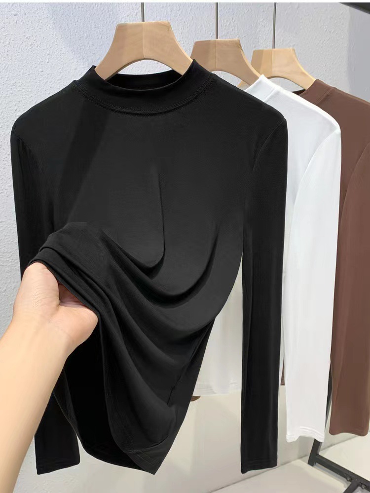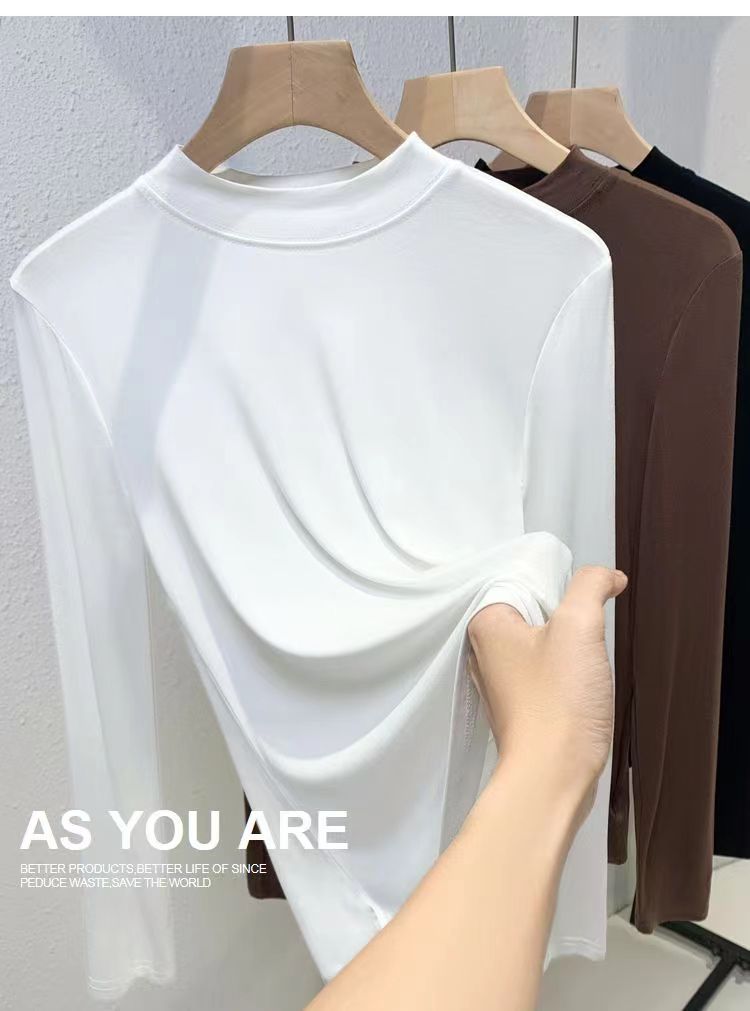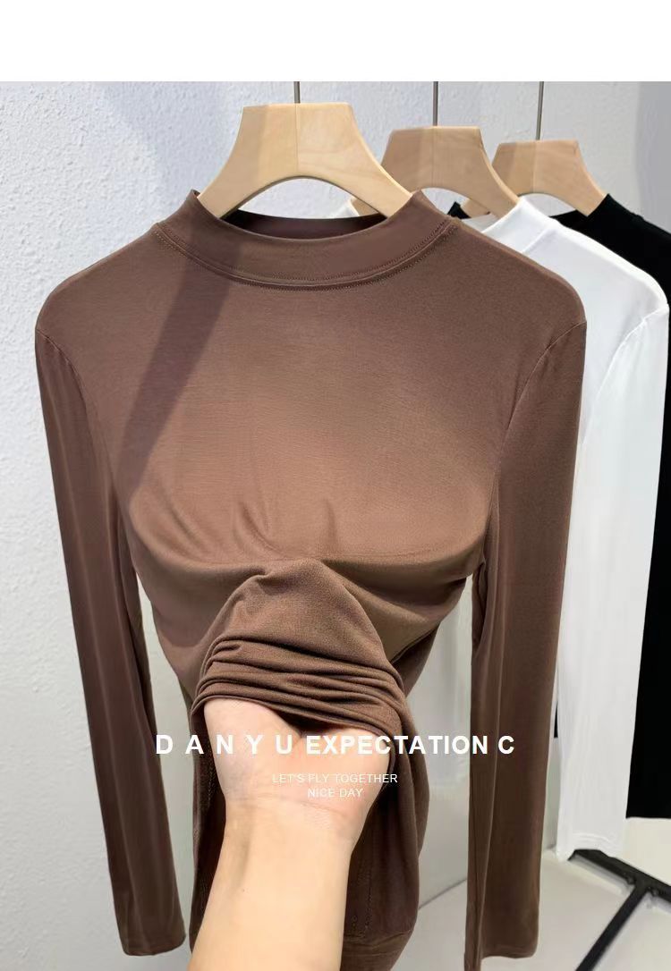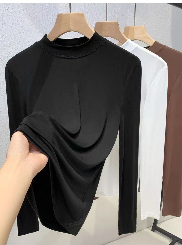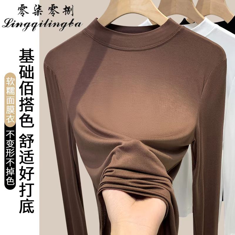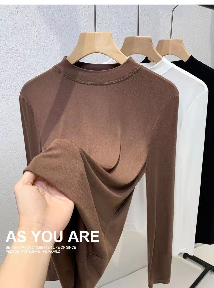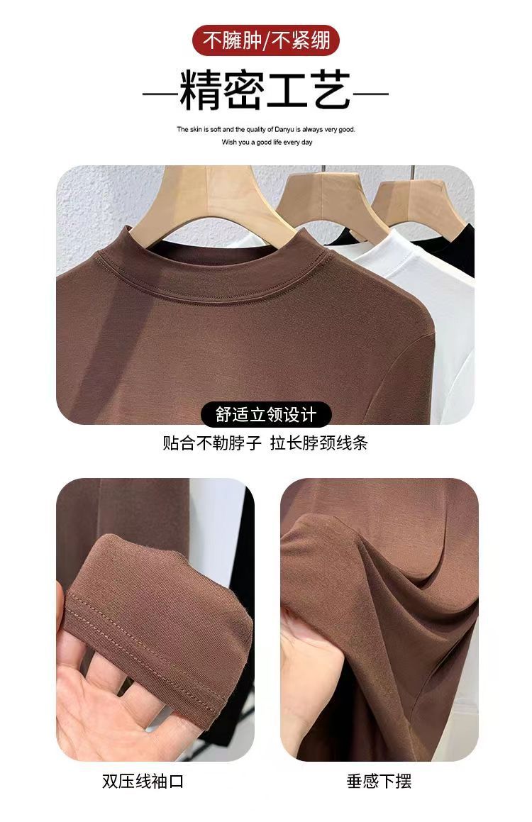 Chubby Girl small stand collar bottoming shirt with modal long-sleeved T-shirt for Women summer all-matching plus size top