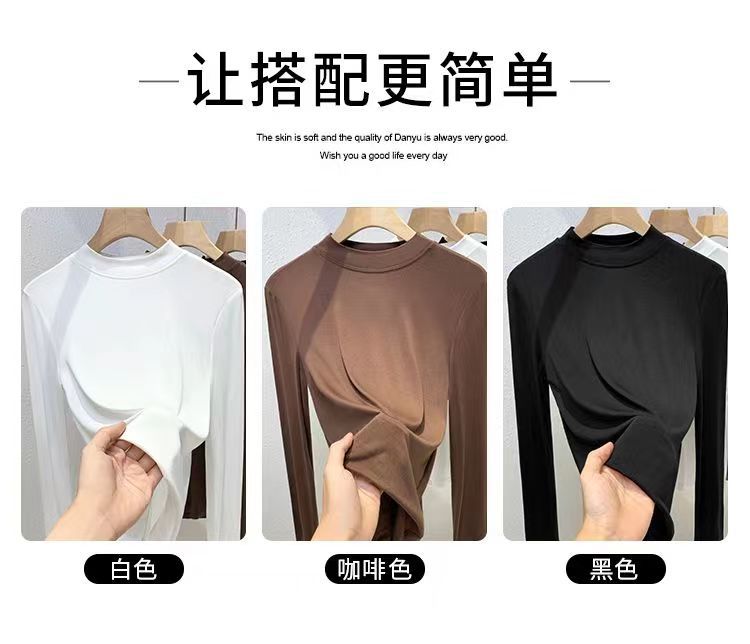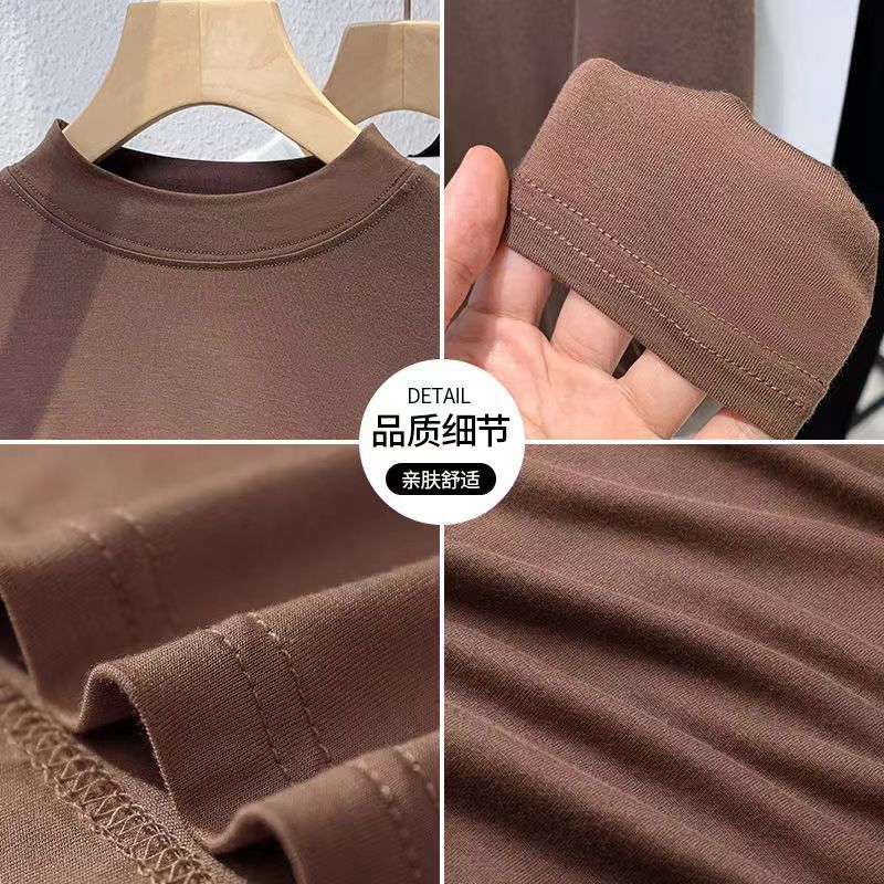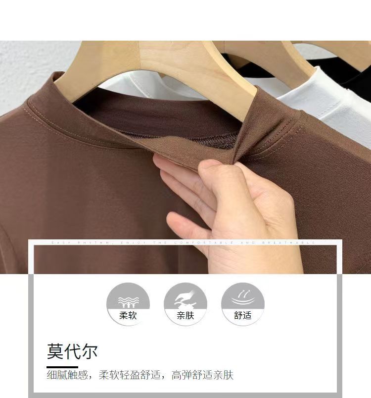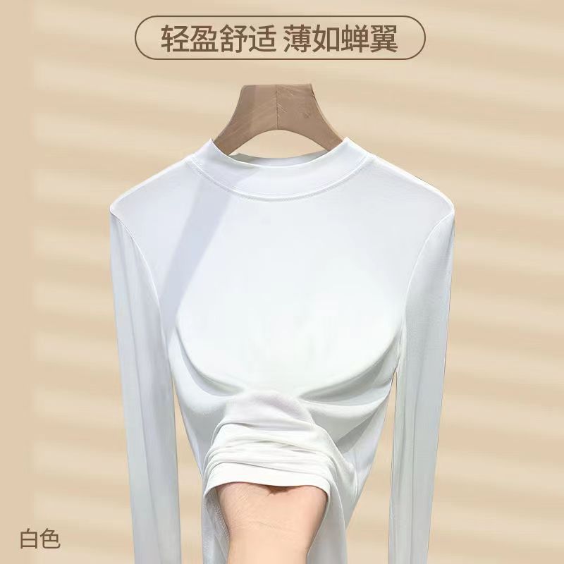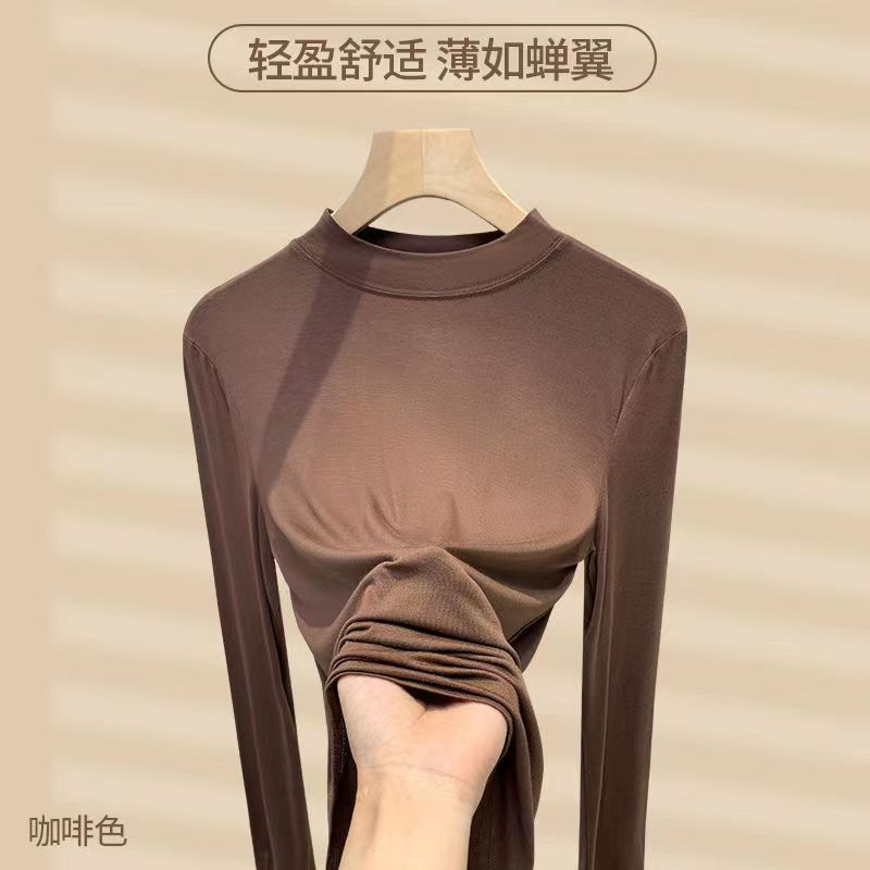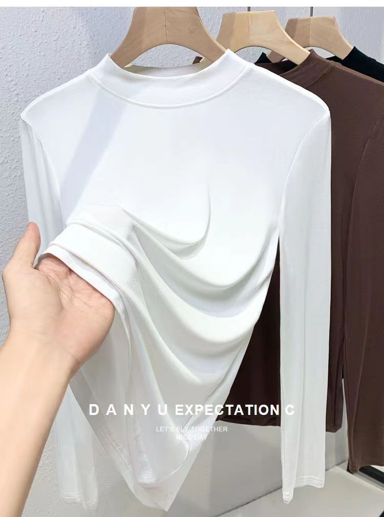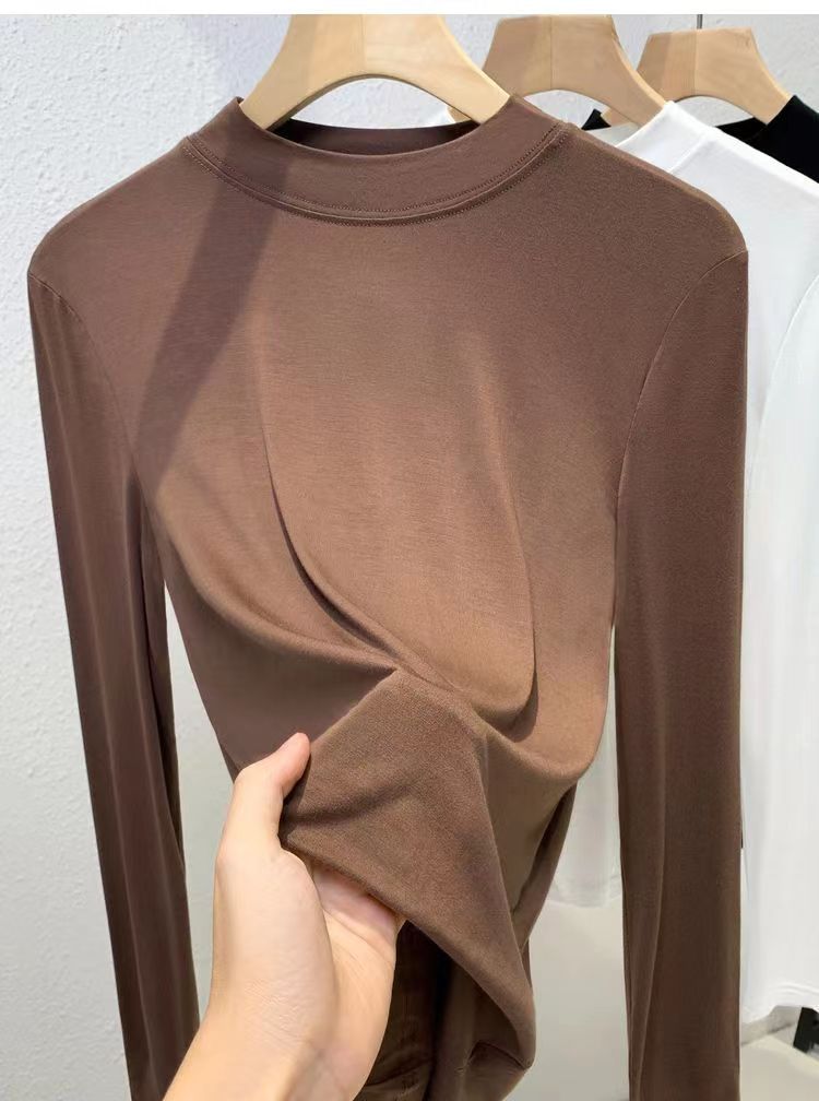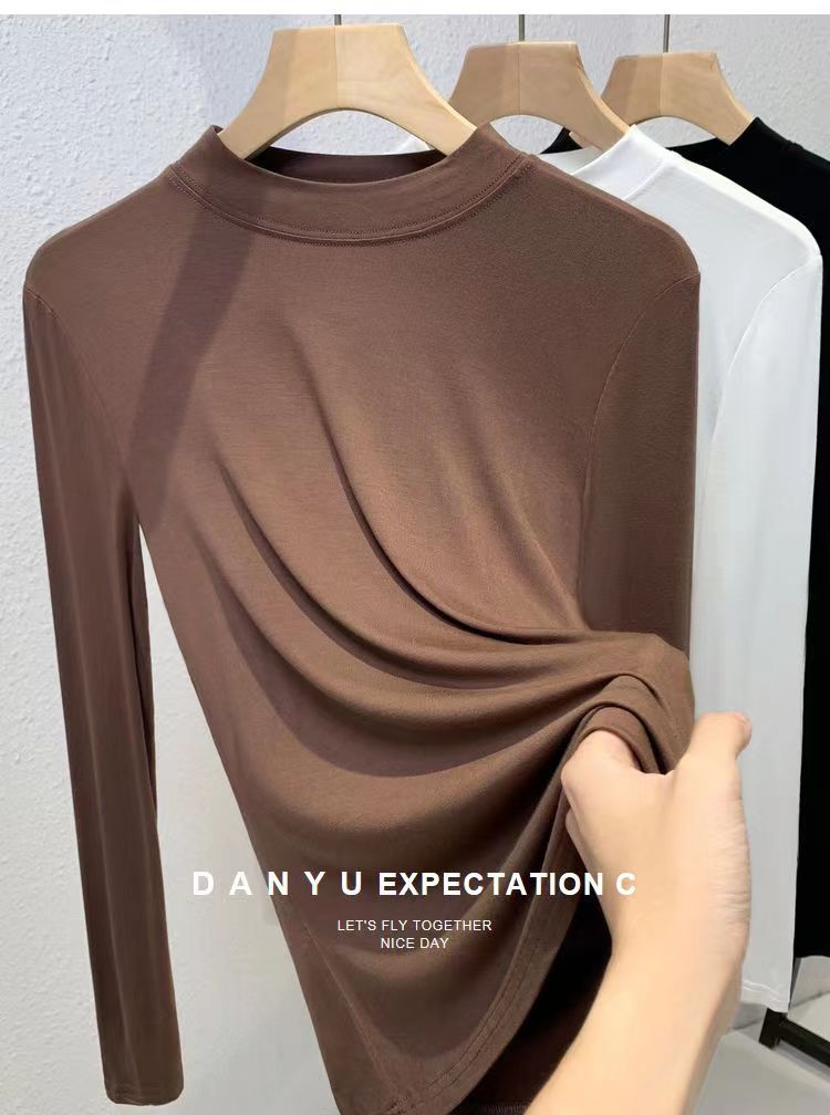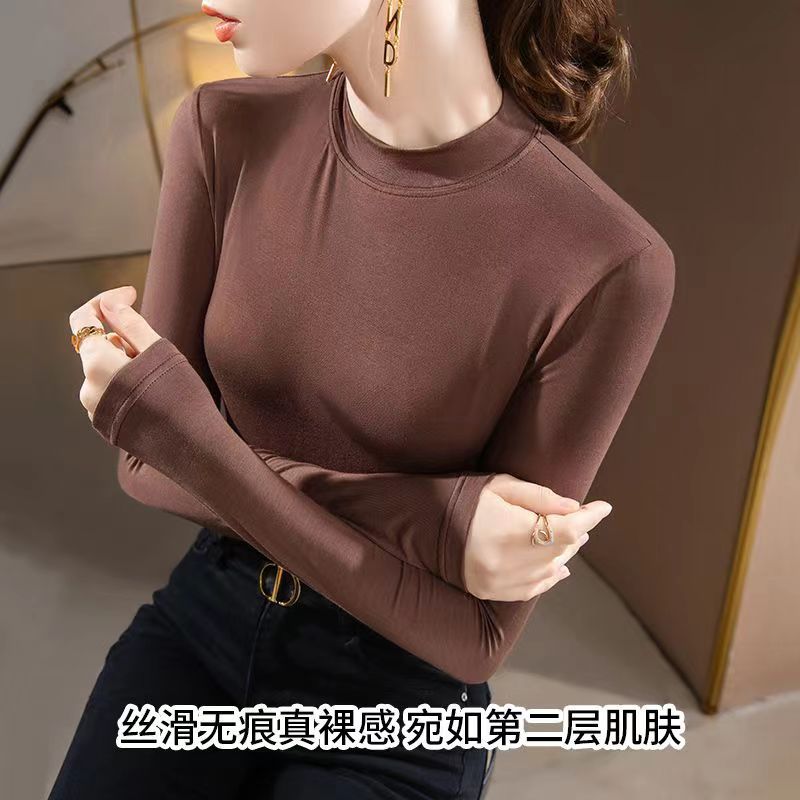 Chubby Girl small stand collar bottoming shirt with modal long-sleeved T-shirt for Women summer all-matching plus size top