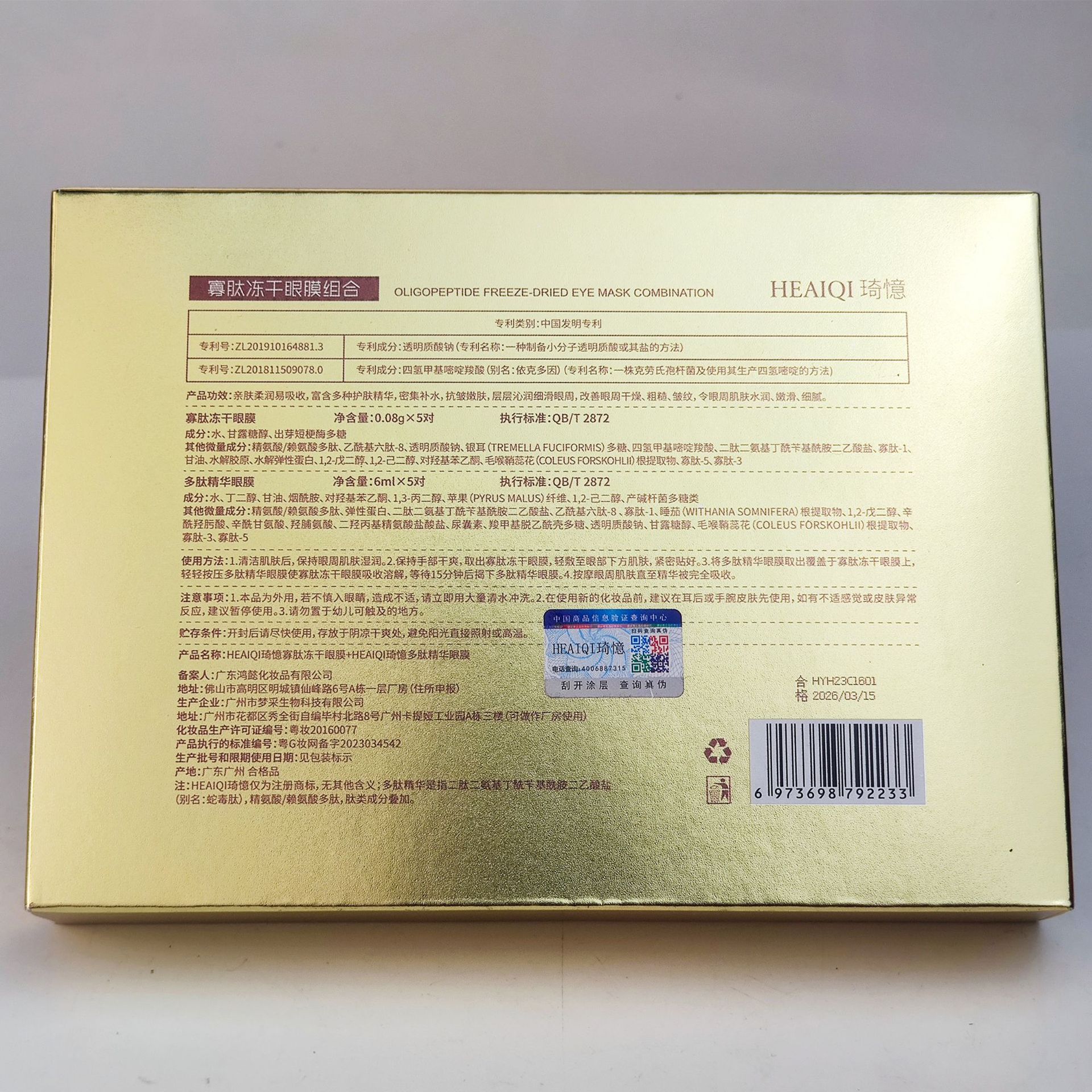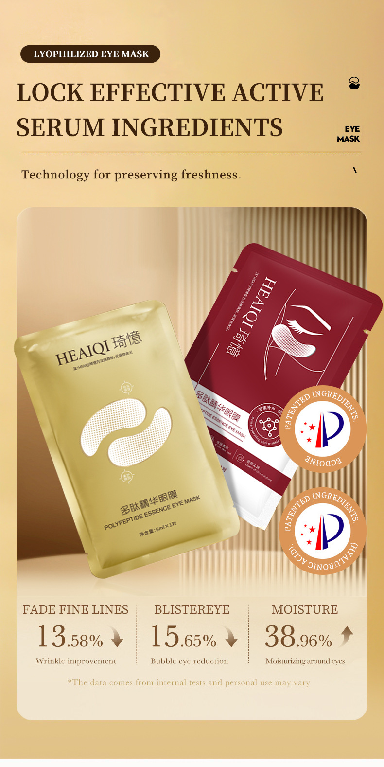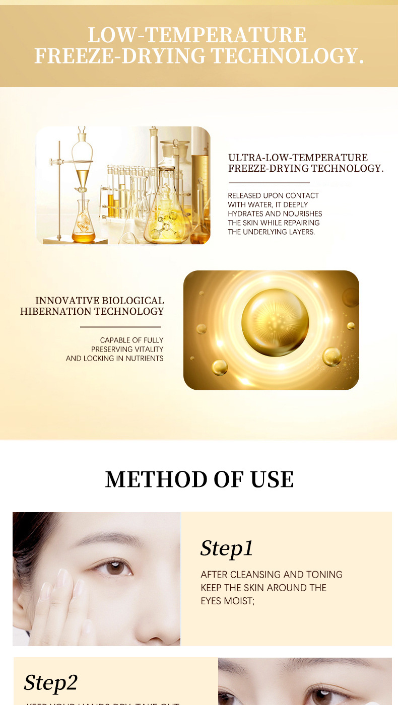 1 set of golden freeze-dried eye masks (wet + dry)