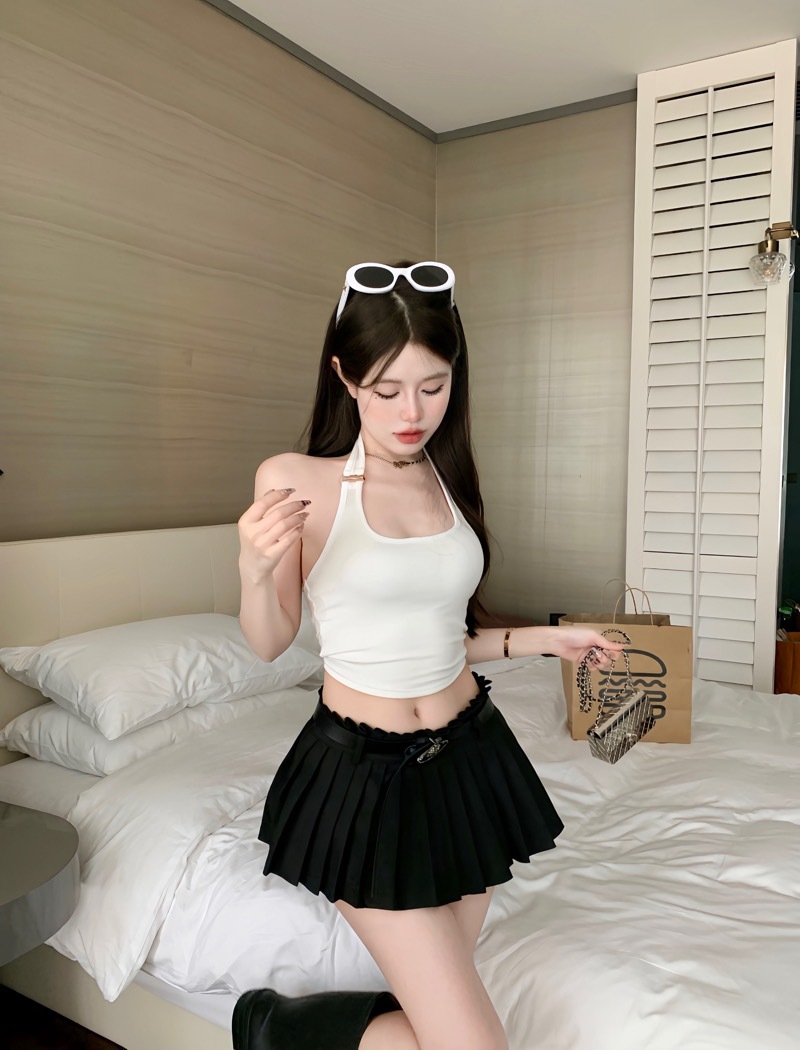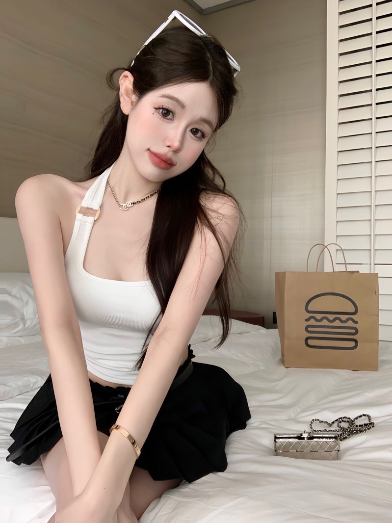 2636 # Sexy Halter-Neck Red Camisole Hot Girl Backless Sleeveless Navel-Baring Bottoming Short Style with Chest Pad