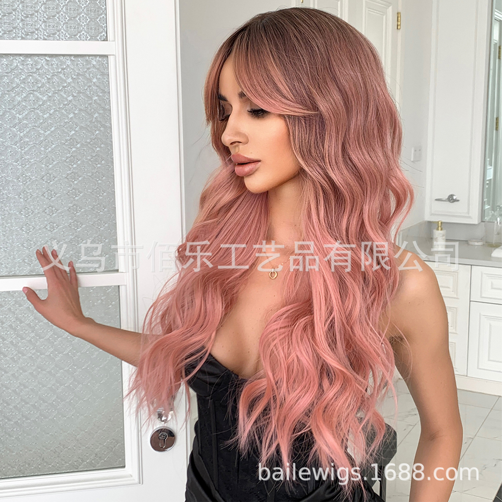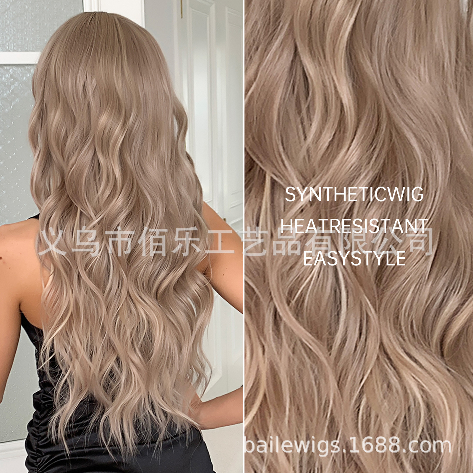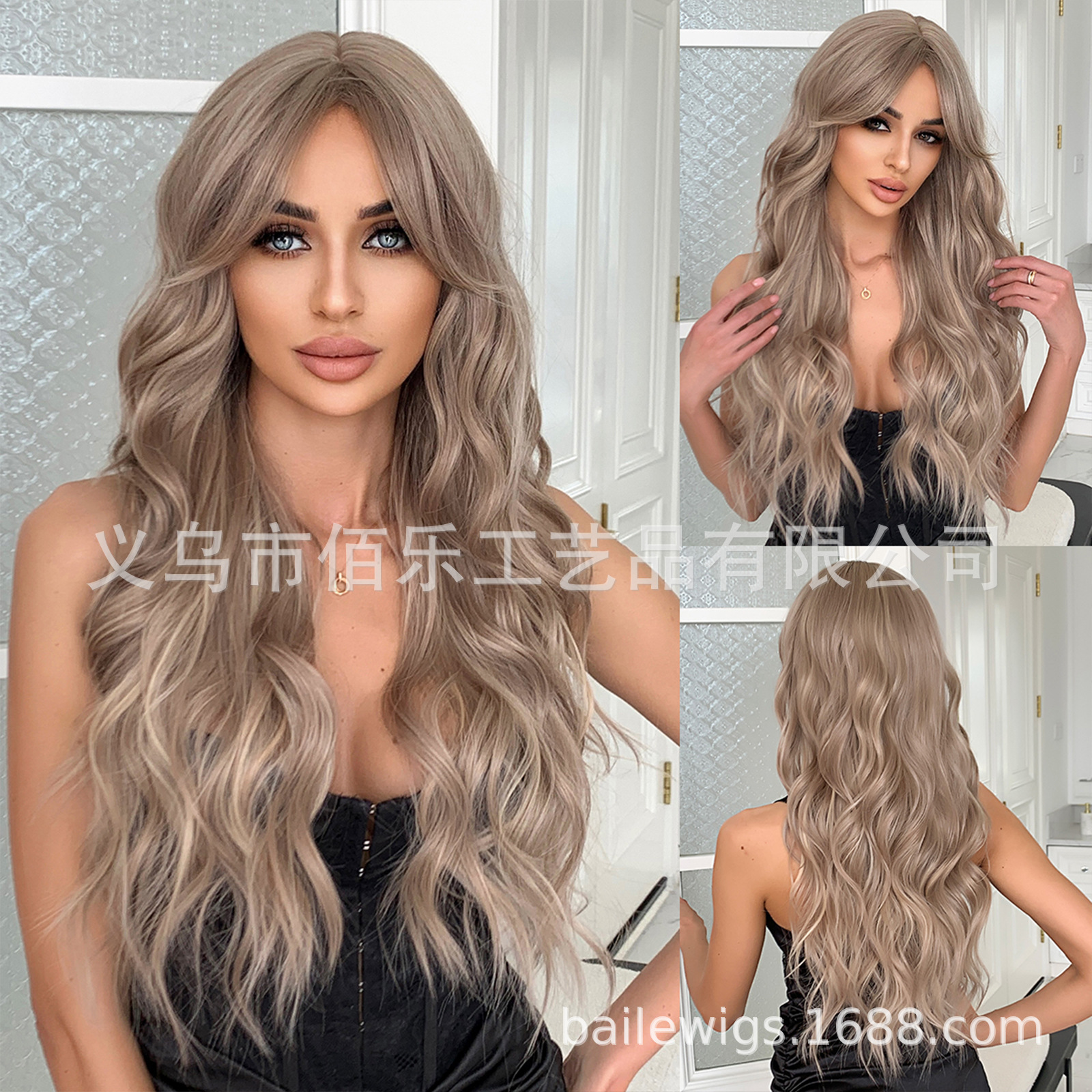 European and American wind wig with bangs dark brown big wave long curly hair 28inch full head cover factory wholesale wig