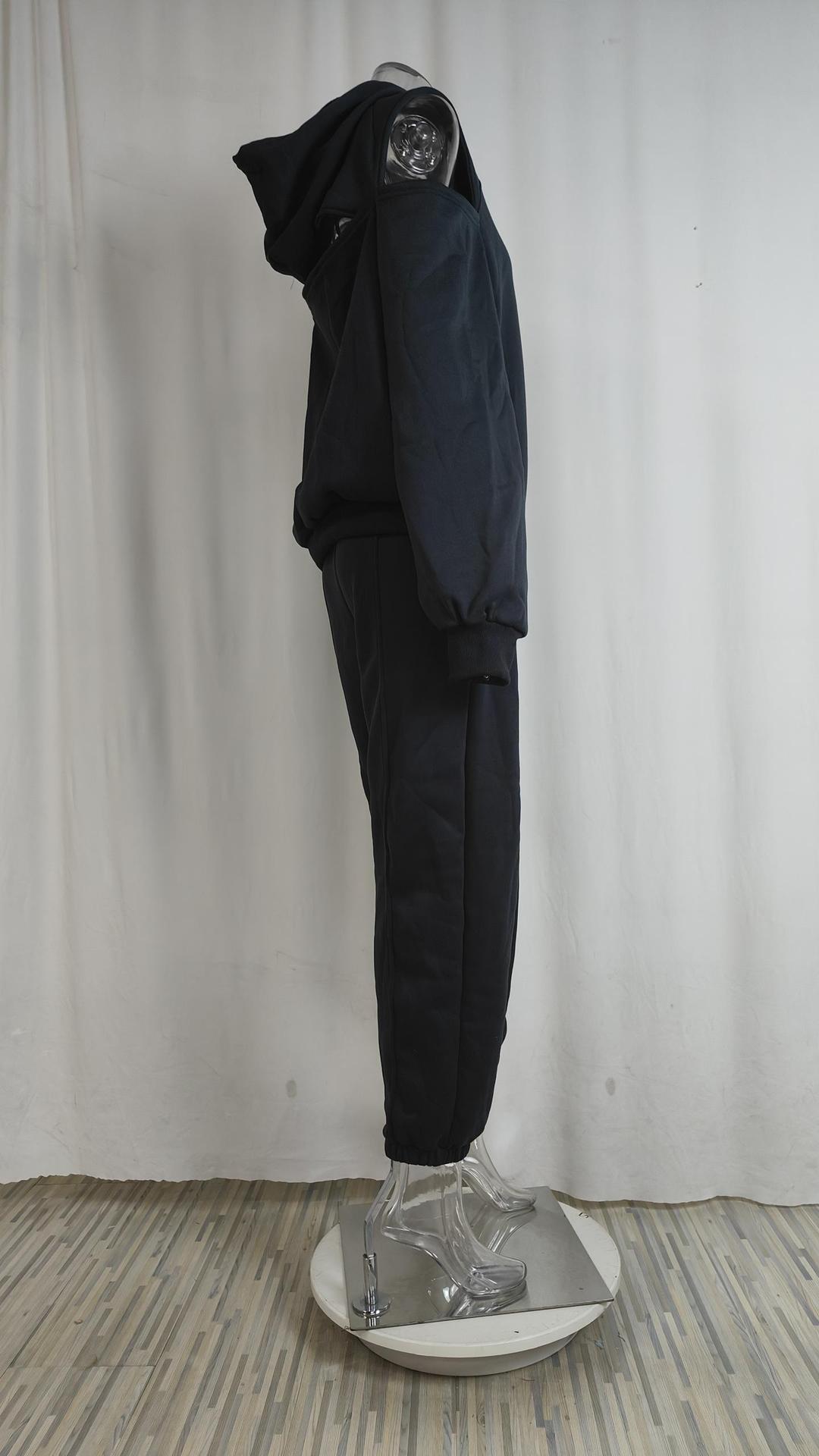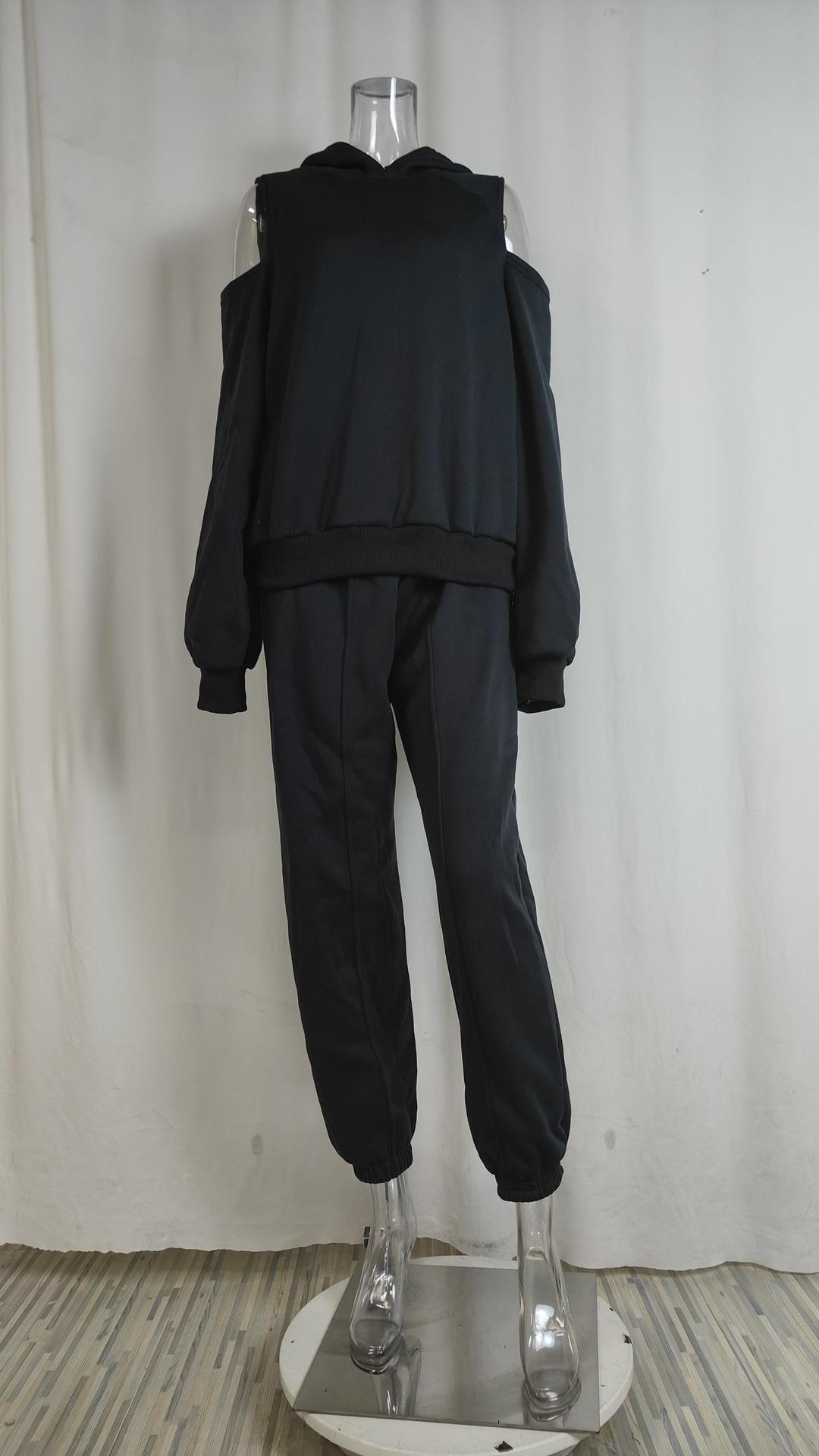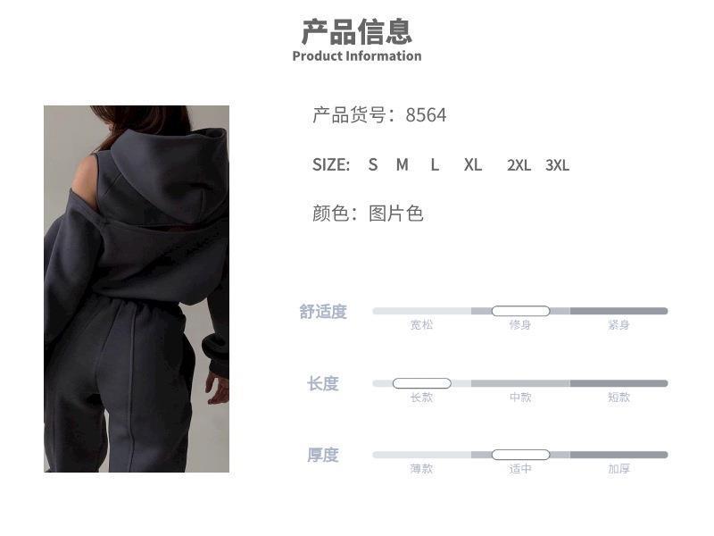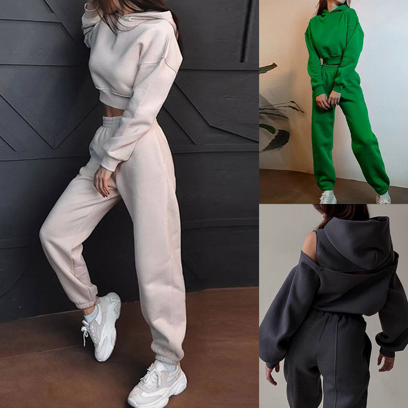Cross-Border Export Women's Clothing 2025 European and American New Two-Piece Set Pure Color Hooded Short Sweatshirt Leggings Pants Suit