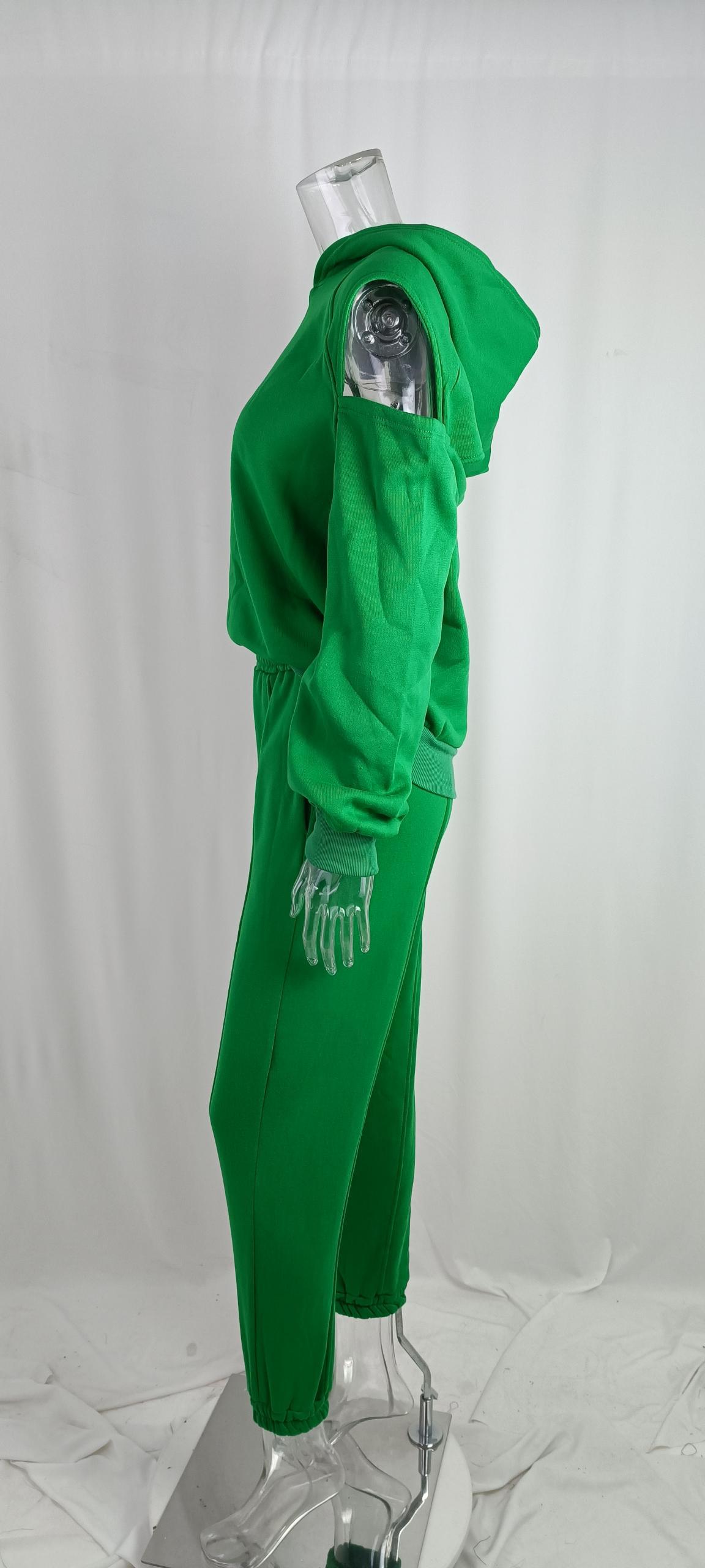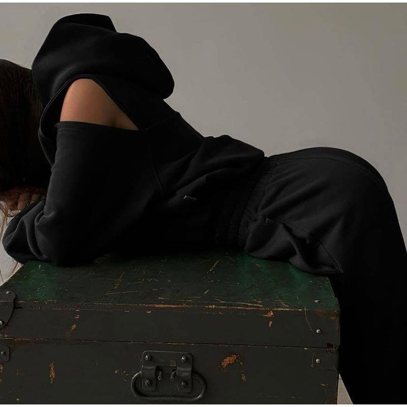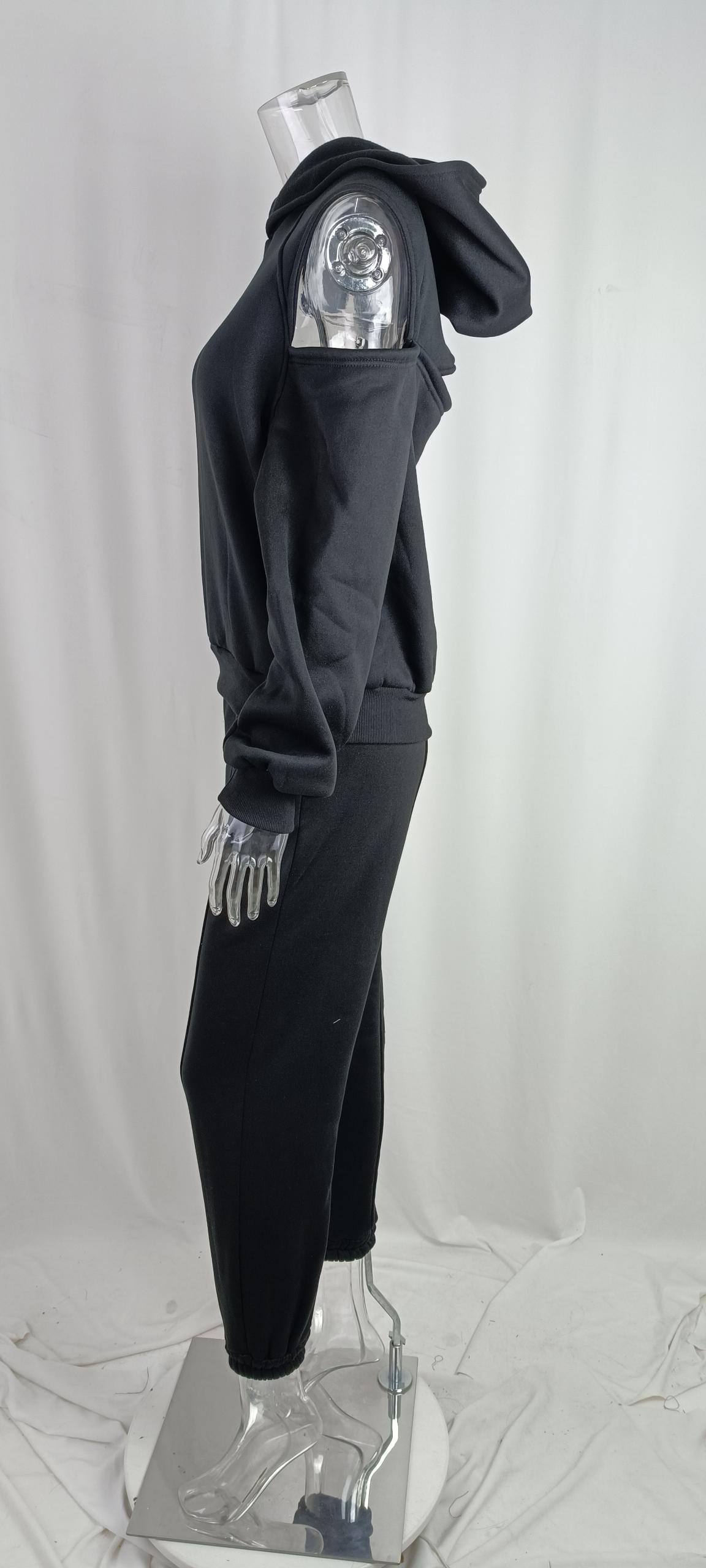Cross-Border Export Women's Clothing 2025 European and American New Two-Piece Set Pure Color Hooded Short Sweatshirt Leggings Pants Suit