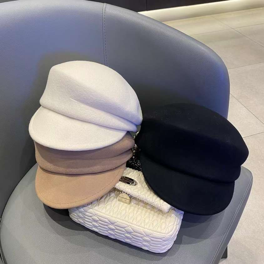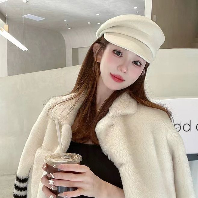 Autumn and winter wool octagonal hat ins beret women's Korean-style elegant newsboy hat British woolen Knight hat peaked cap