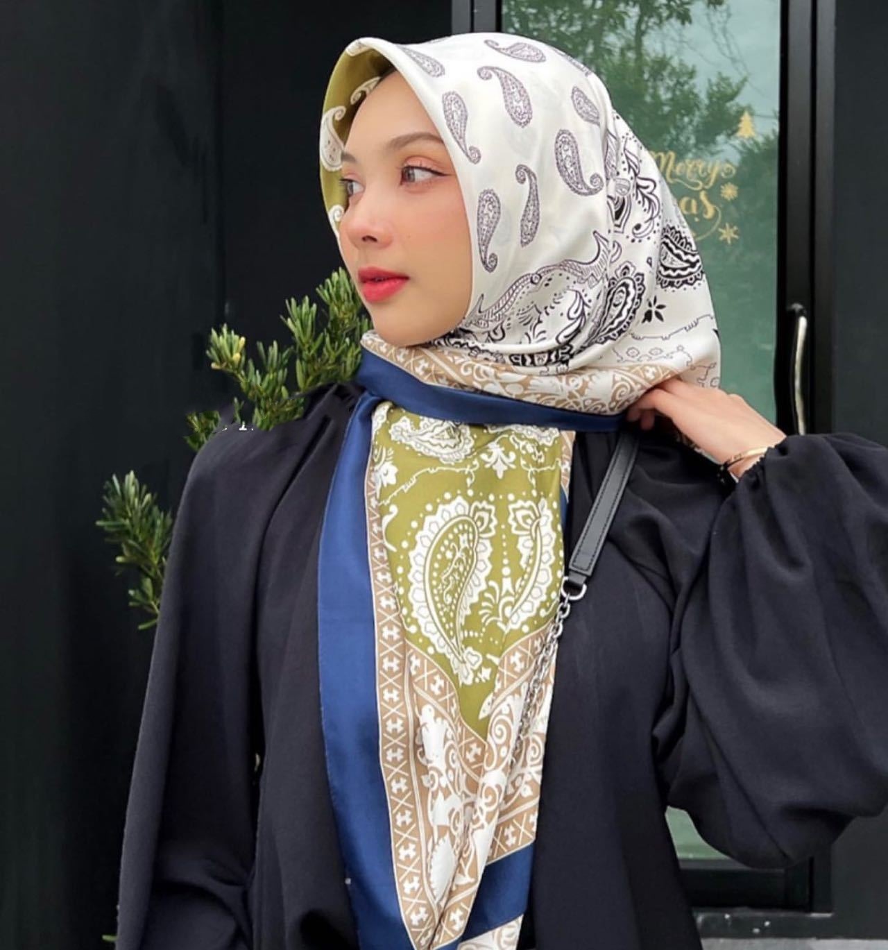 Cross Border Malaysia 110CM Vintage Cashew Printed Square Warm Scarf High Sense Muslim Turban Women
