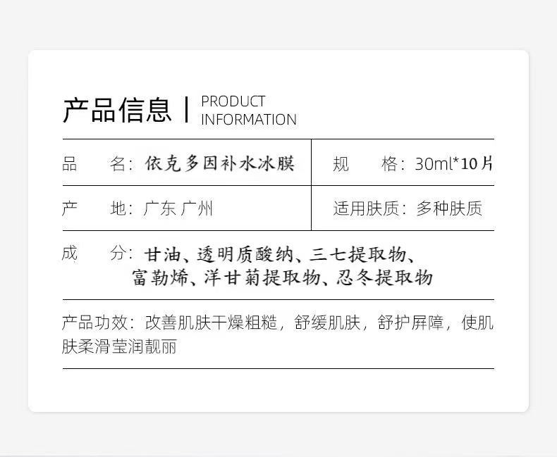 Multi-moisturizing and soothing ice mask (pack of 10 pieces)