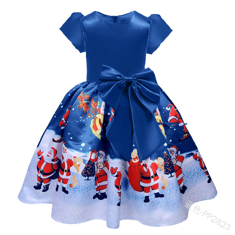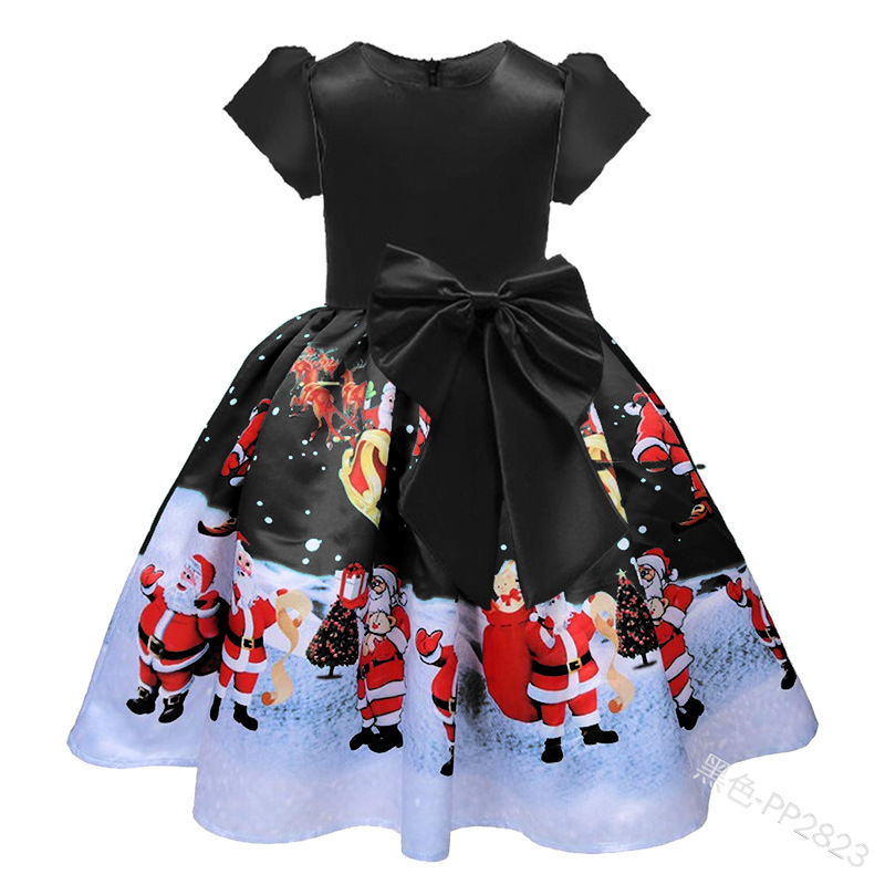 Spot Cross-border Export European and American Amazon Kidsren's Printed Christmas Dress Bow Princess Dress PP2823