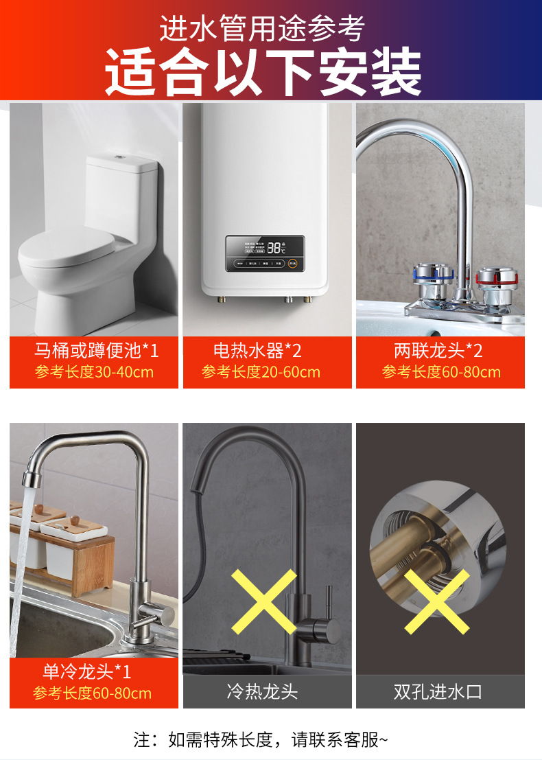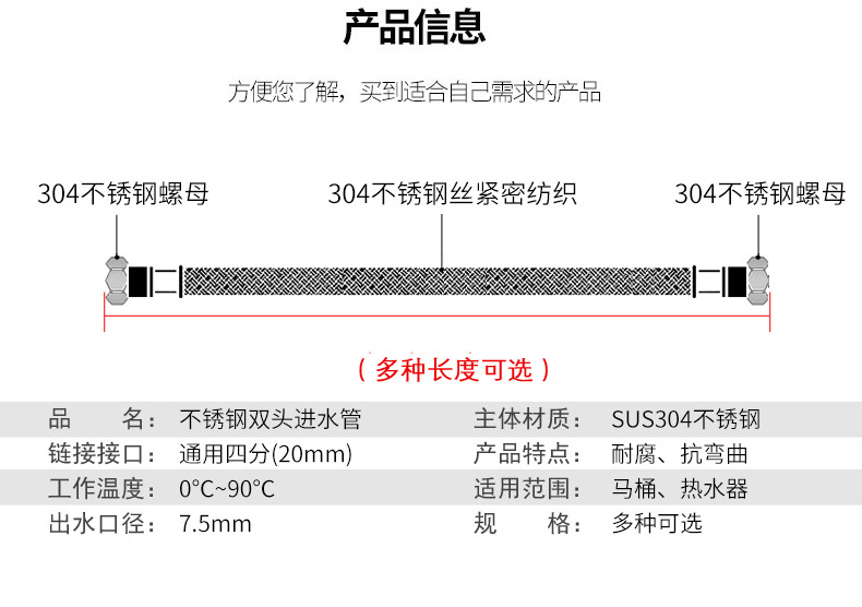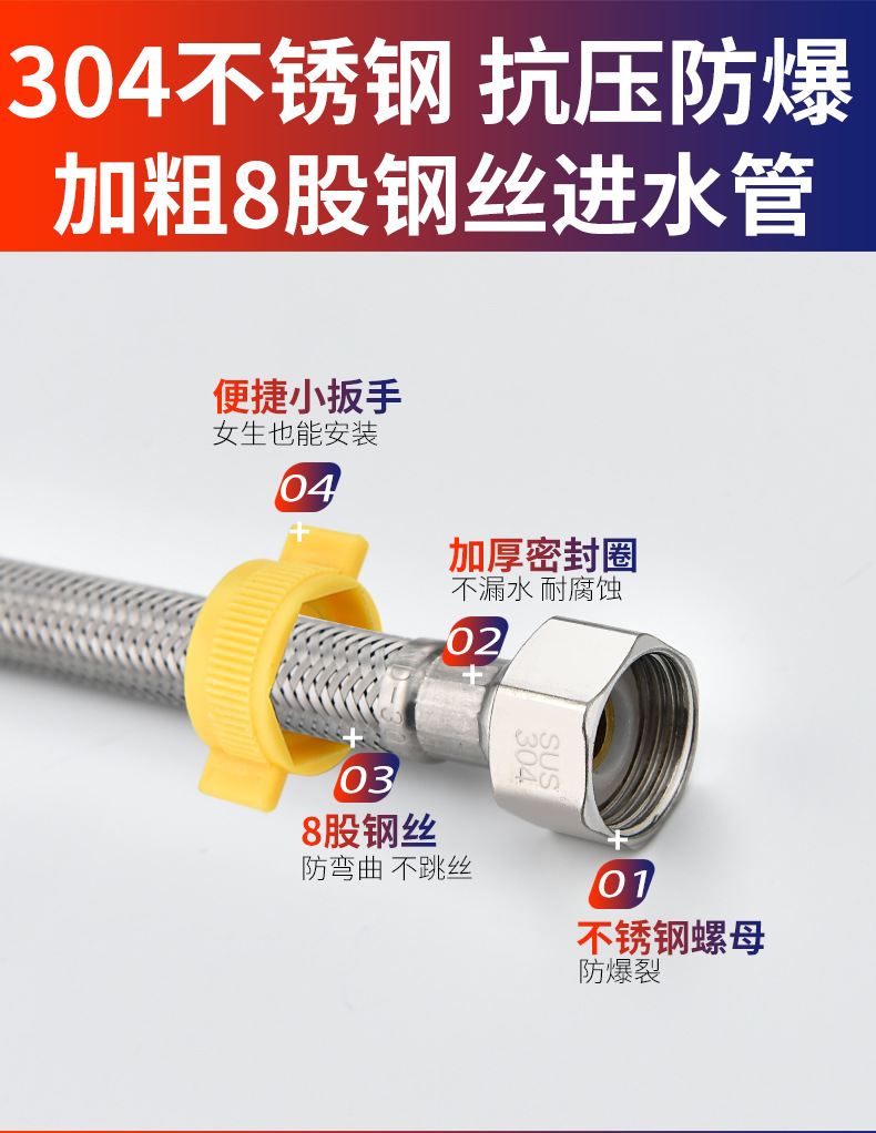 [80cm] 304 stainless steel hose-4 points with wrench [rust compensation]]