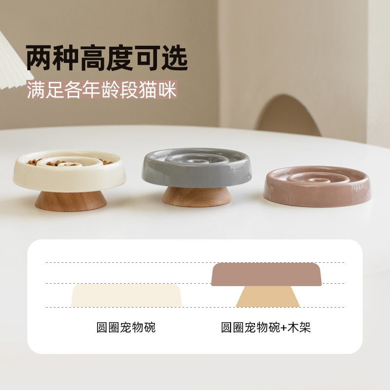 Circle slow food plate + concave-convex wooden seat (hazelnut brown)