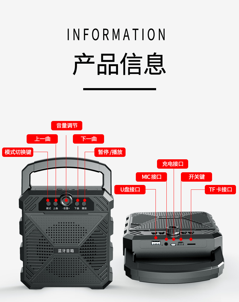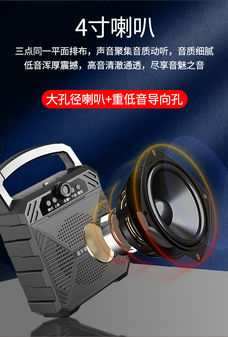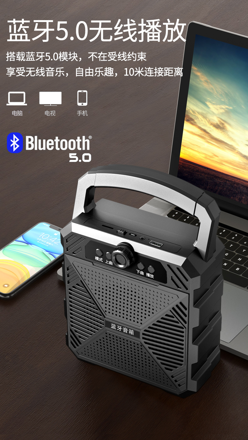 New Wireless Bluetooth Speaker Portable Square Dance Sound System Karaoke Home Subwoofer Voice Announcer