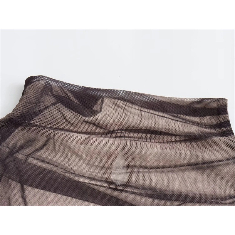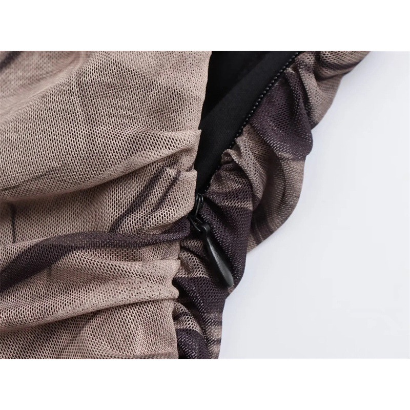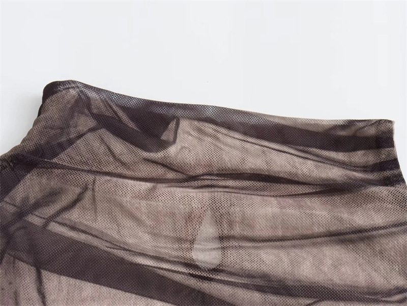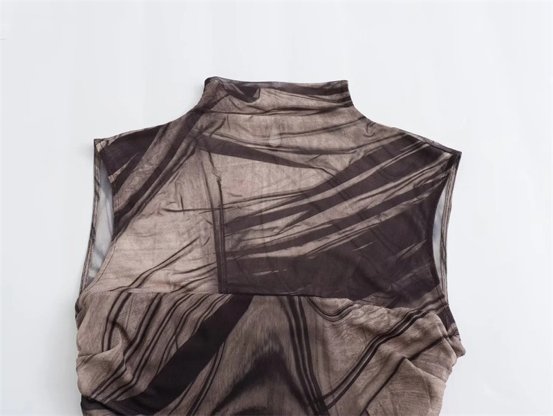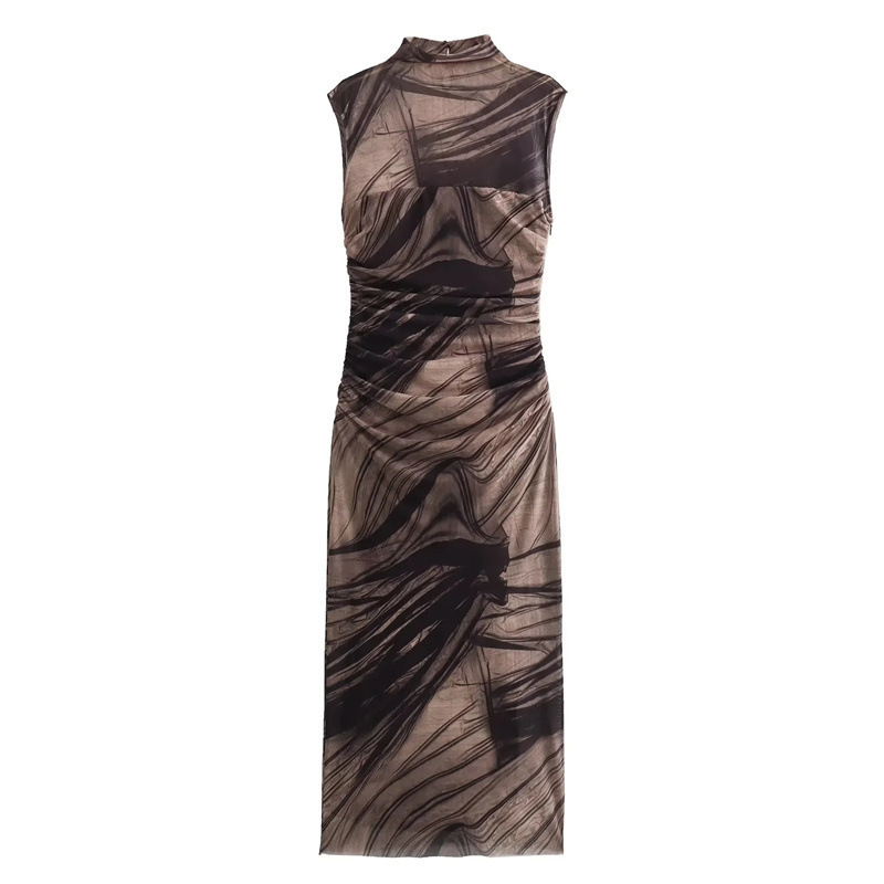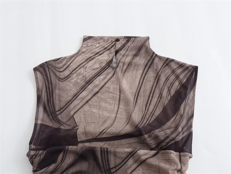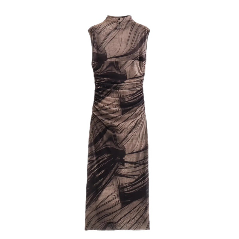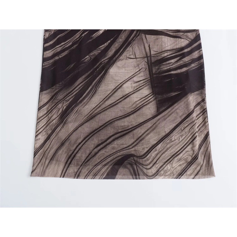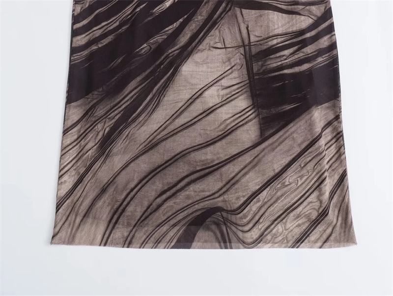 ZA cross-border foreign trade 2023 autumn new European and American simple plain line style silk net Printing Dress female 86