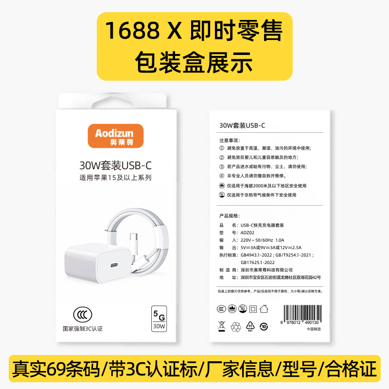 [fast charging apple interface] 30w fast charging head + 1m pd cable set