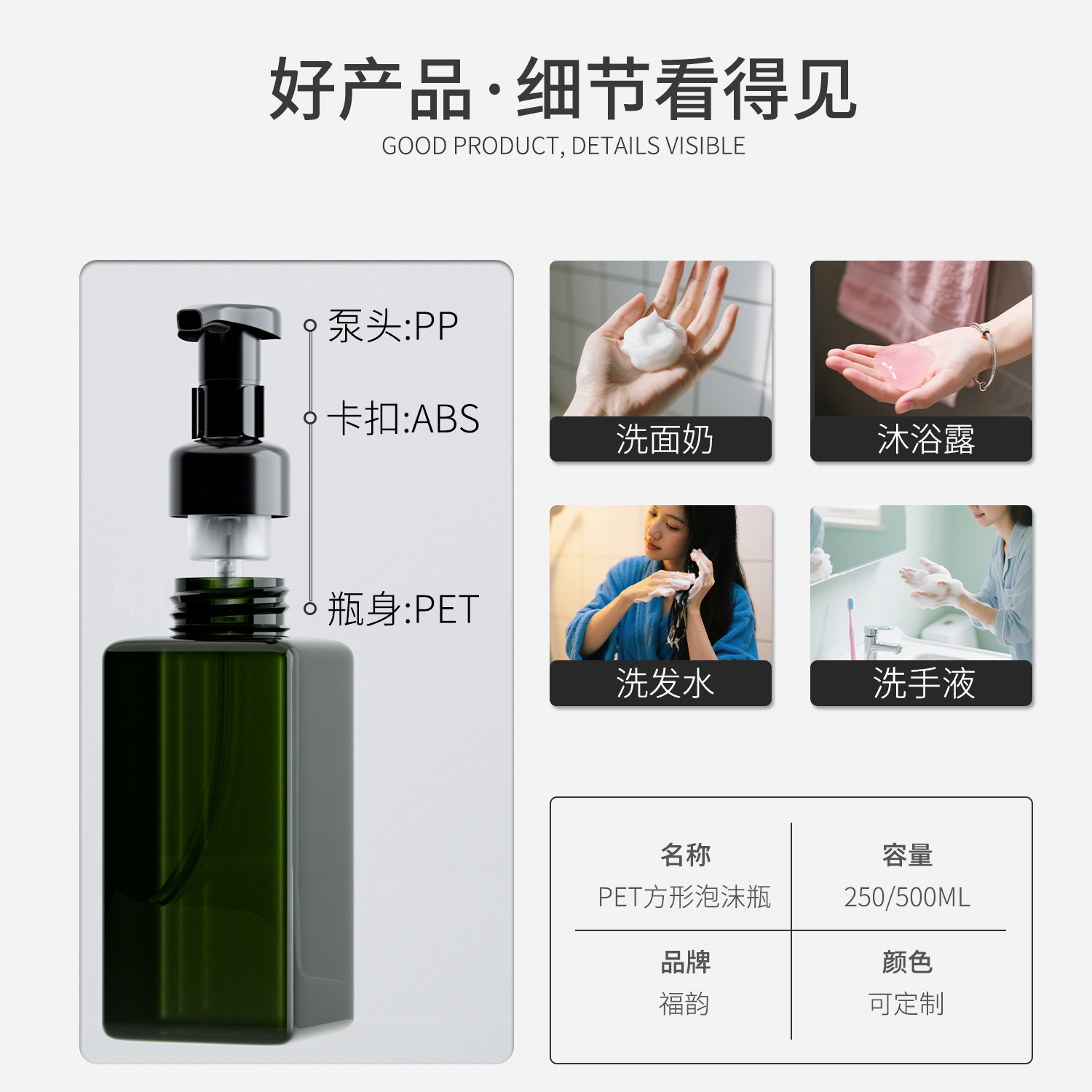 方形洁面慕斯泡沫瓶PET塑料按压起泡瓶500ml洗手液沐浴露分装空瓶
