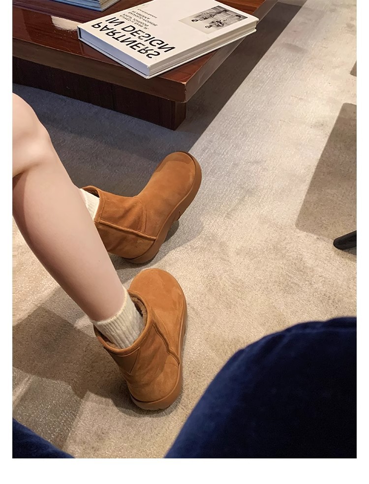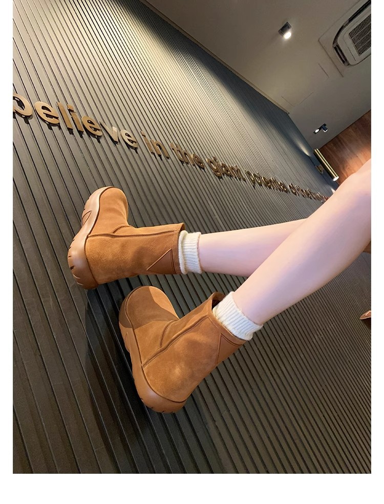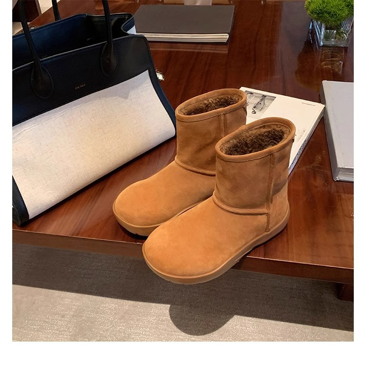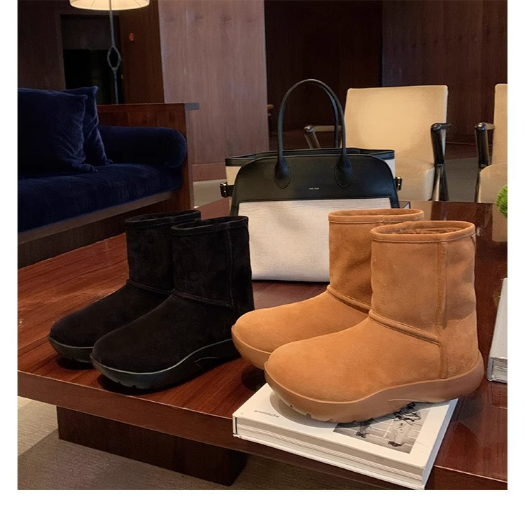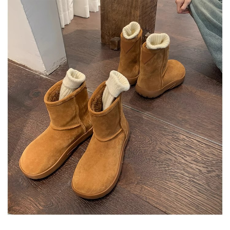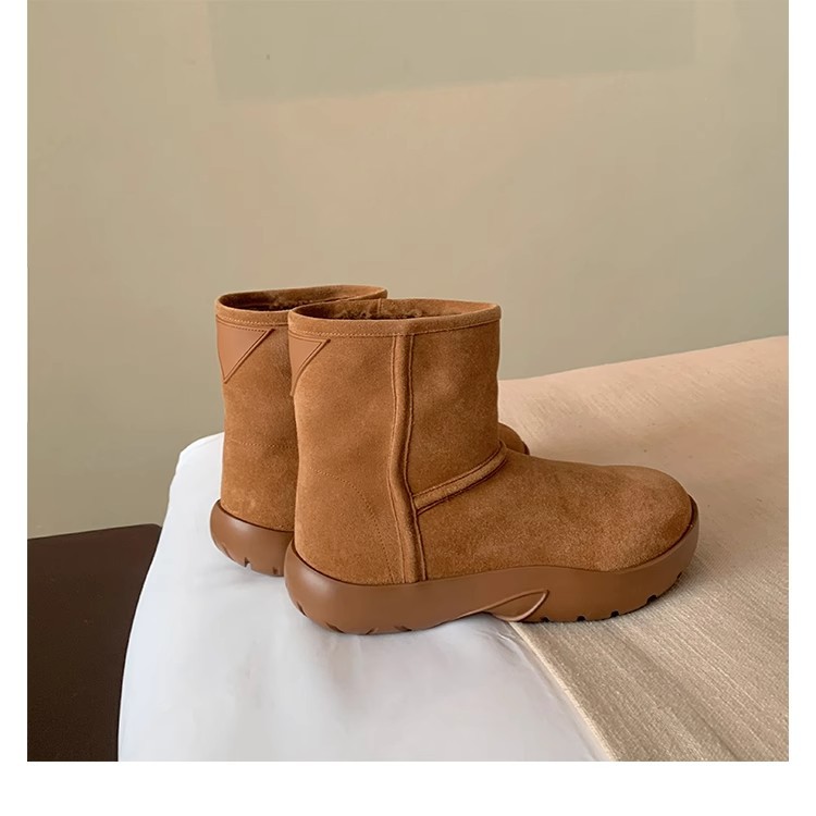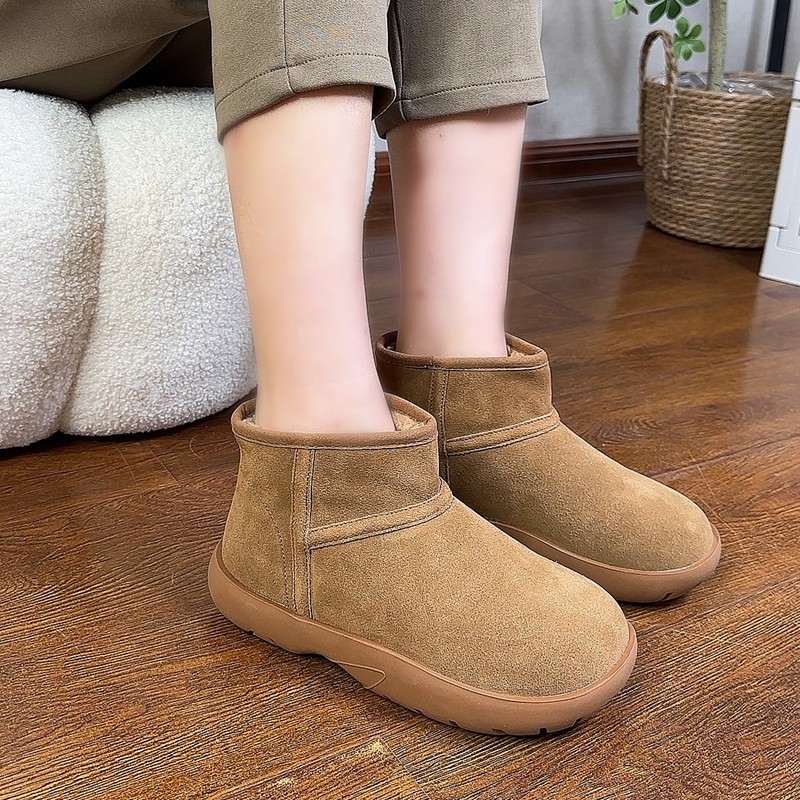 Bvmm Women's Snow Boots Winter Genuine Leather and Fur Integrated Short Boots Large Cotton Shoes Autumn and Winter Cold-Proof Retro Style