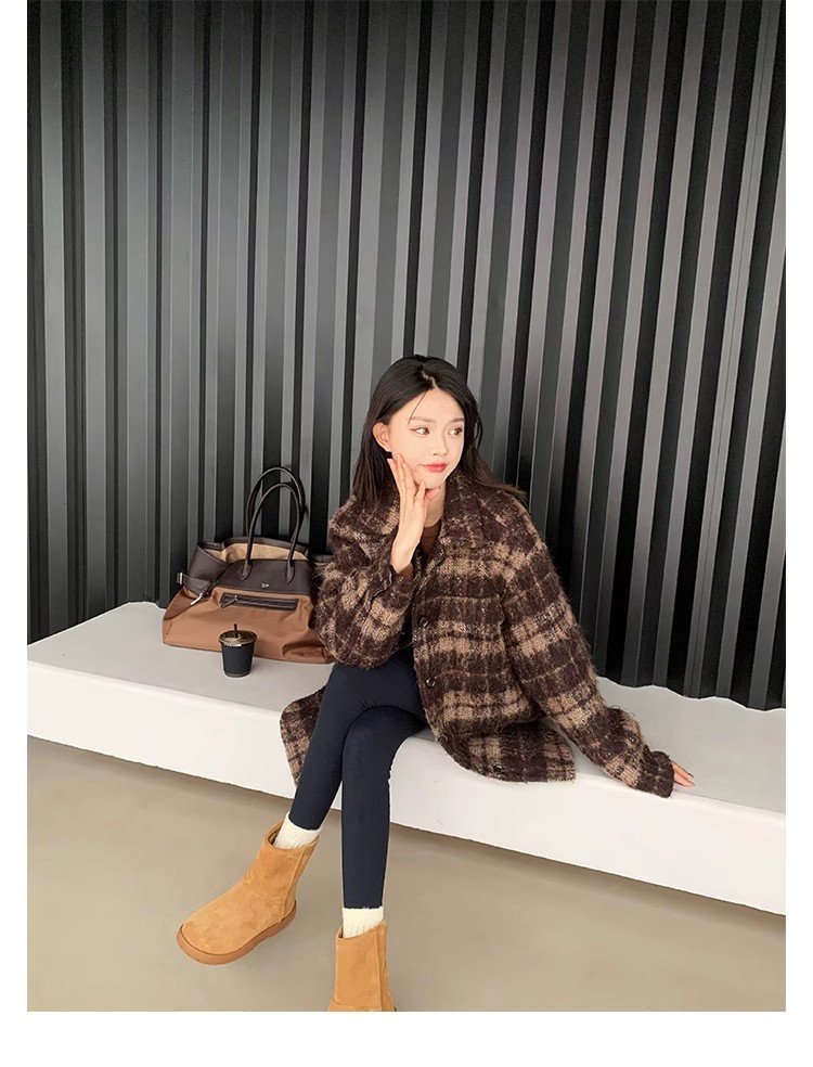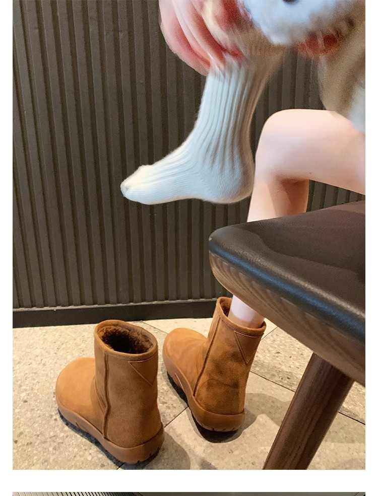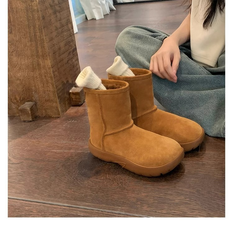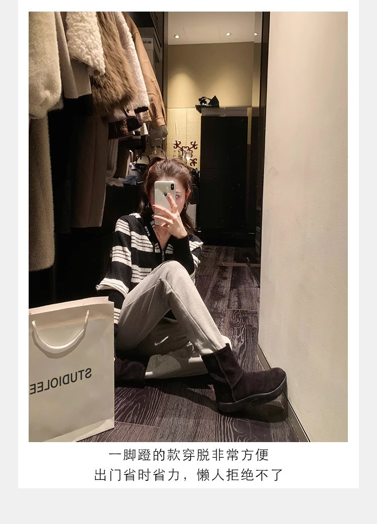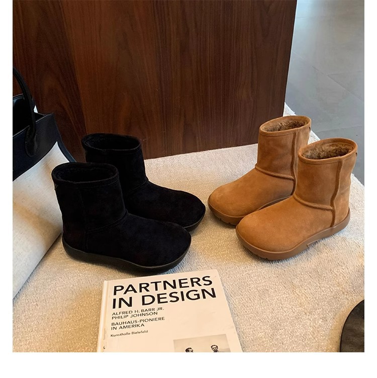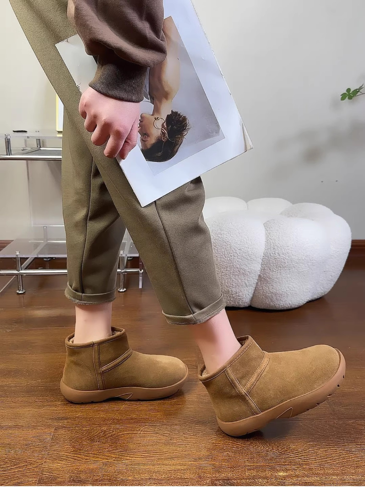 Bvmm Women's Snow Boots Winter Genuine Leather and Fur Integrated Short Boots Large Cotton Shoes Autumn and Winter Cold-Proof Retro Style
