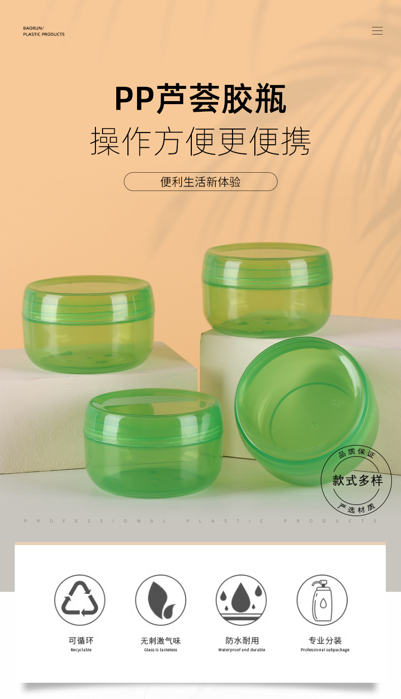 Aloe Vera gel bottle PP wide mouth plastic bottle sleeping mask bottle 200g aloe gel bottle cosmetic mud film jar