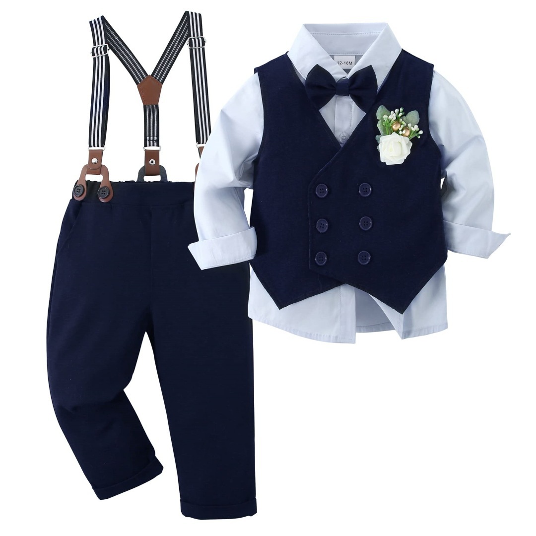 Cross-border European and American new spring and autumn long-sleeved shirt vest corsage multi-piece suit boys' wedding dress performance clothing generation
