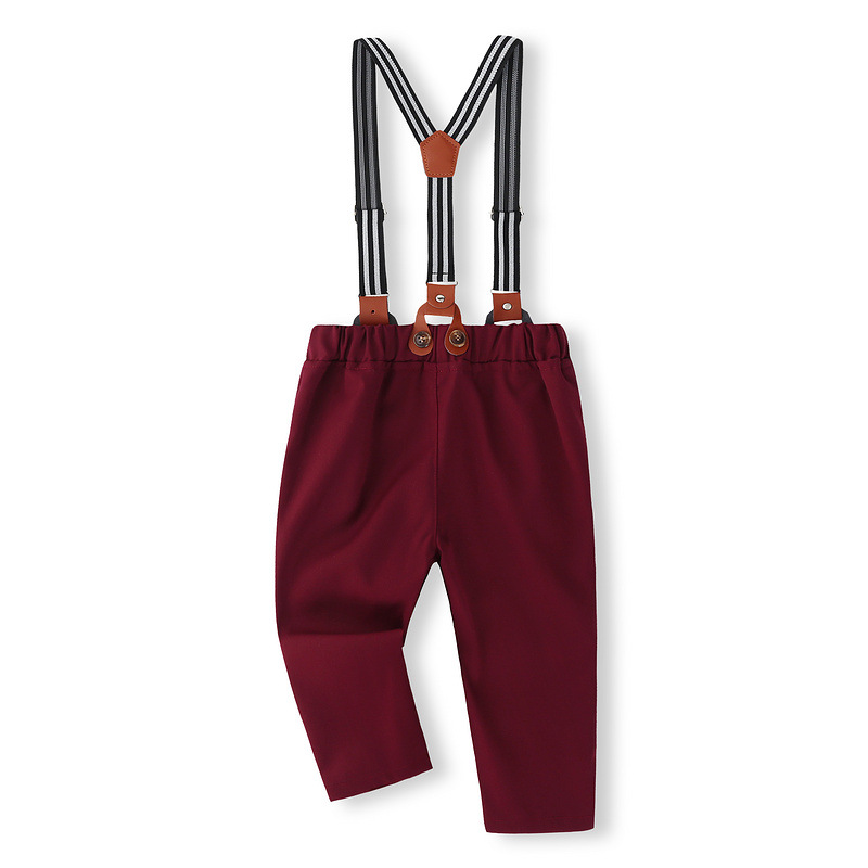 European and American Style Boys' Gentleman's Dress Kidsren's Clothing 2024 Spring New Kidsren's Long-Sleeved Shirt Performance Clothing Suspender Suit