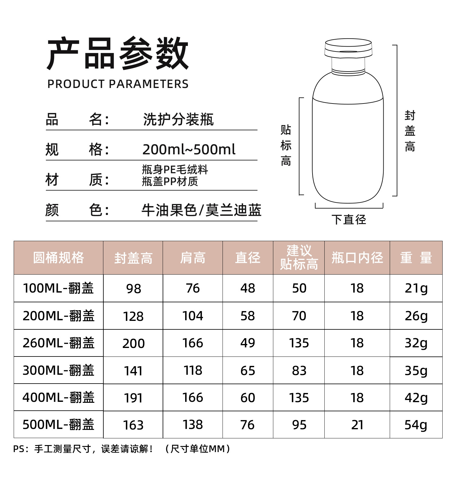 Wash bottle-100ml-macaron powder (flat head frosted apricot pump)