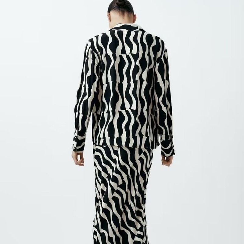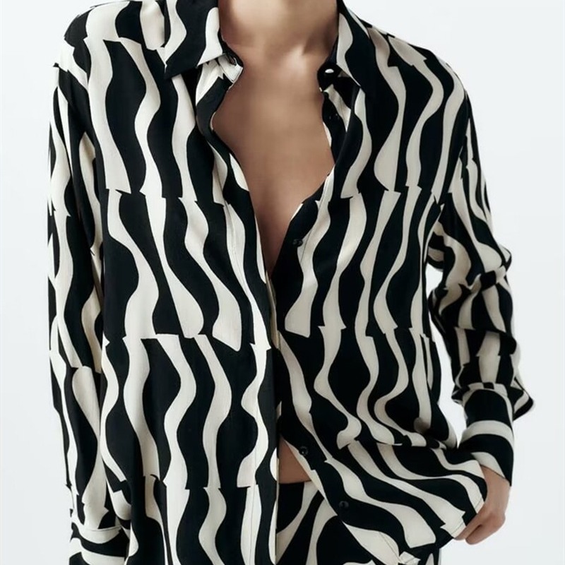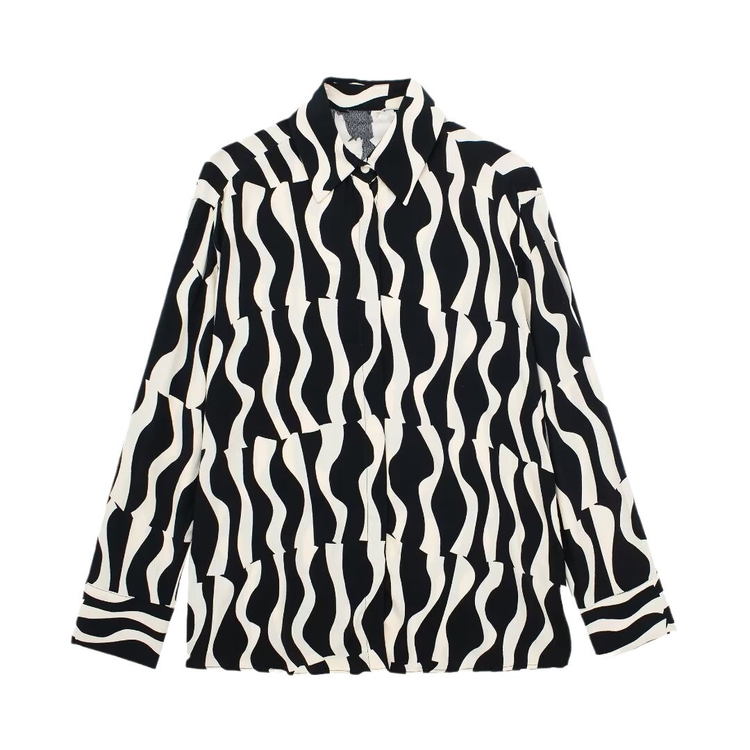 UC & ZA European and American style cross-border new women's lapel Western style printed loose all-match long sleeve shirt 9878/056