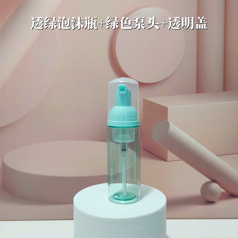 60ml; translucent green foam bottle + green pump head + transparent cap; plastic
