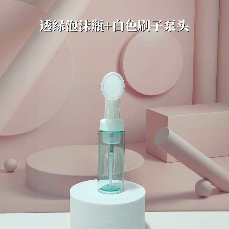 60ml; translucent green foam bottle + white brush pump head; plastic
