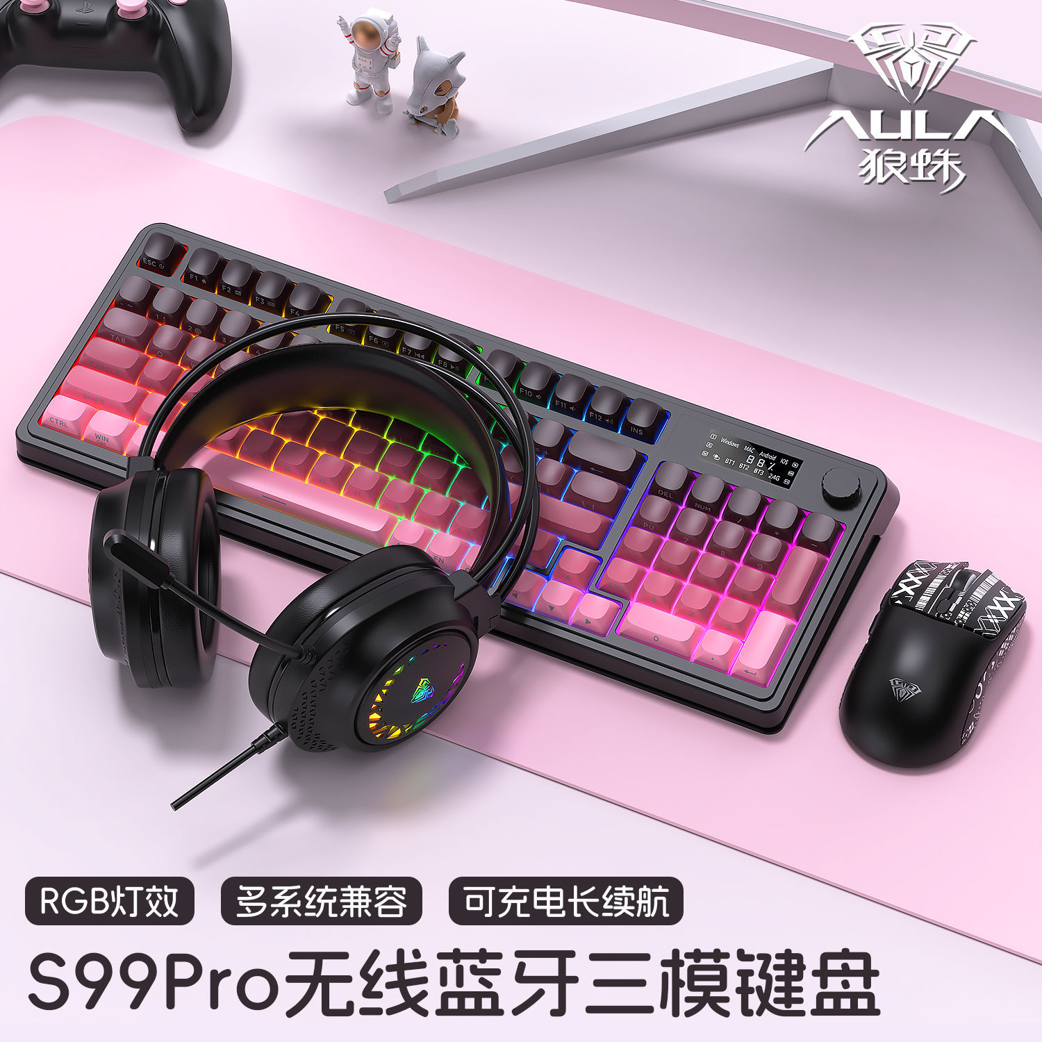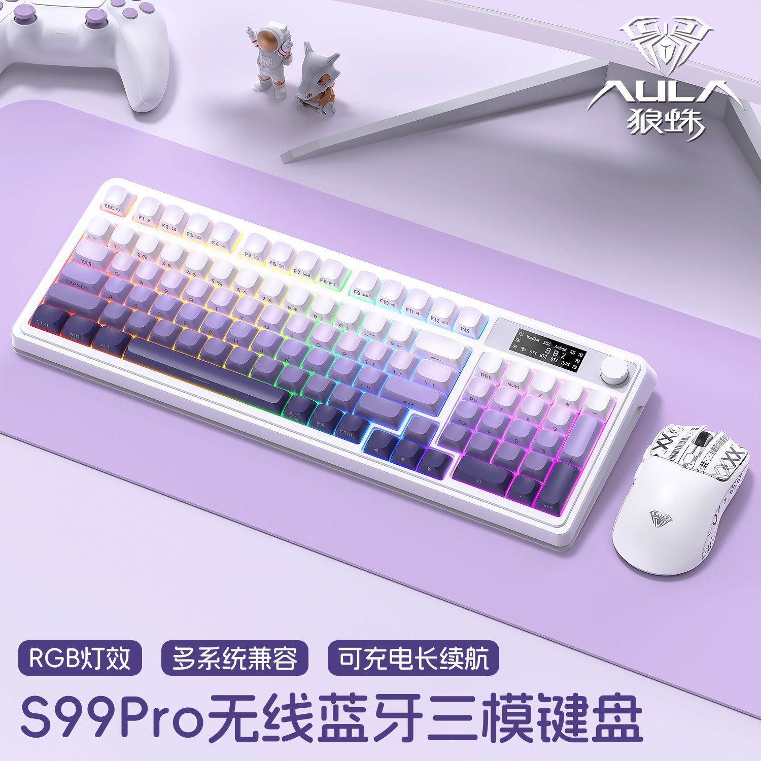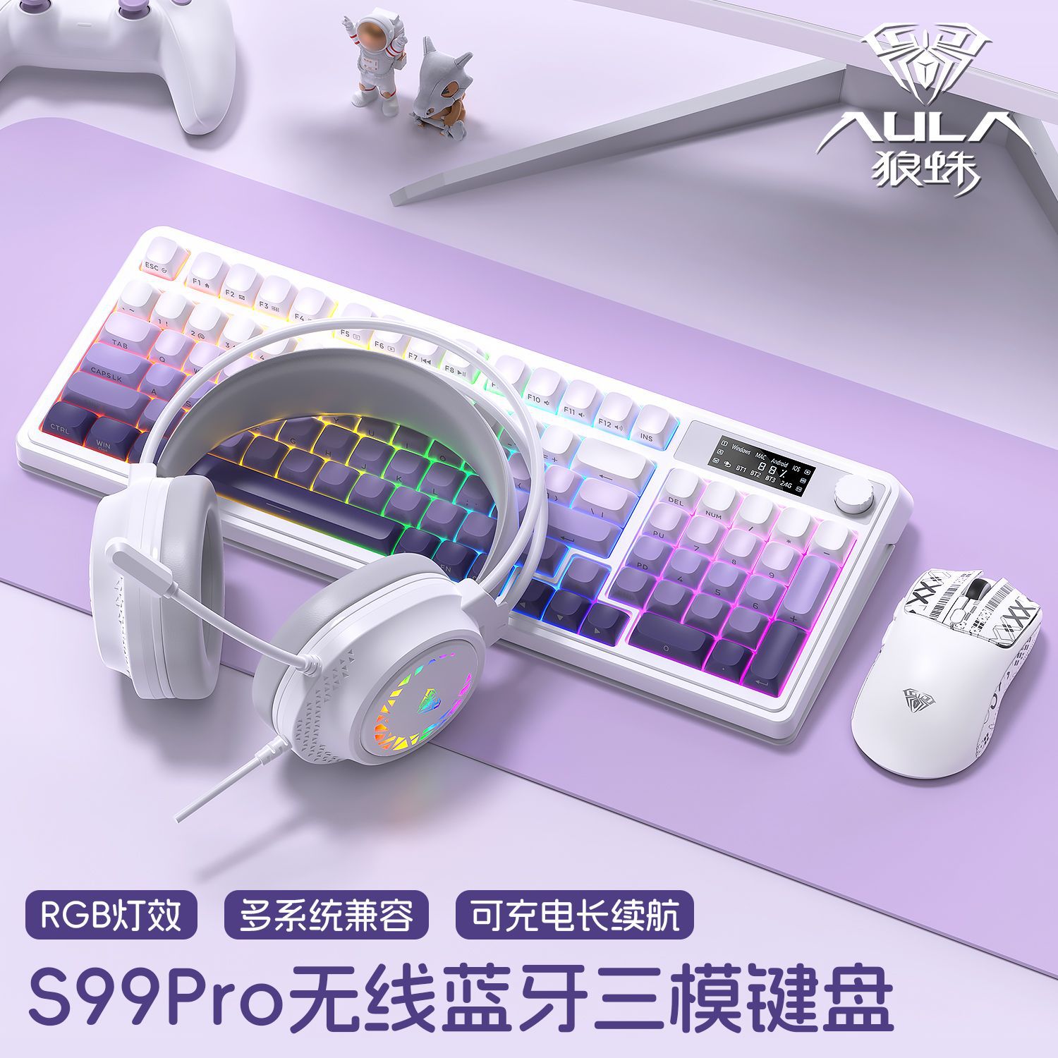 [xingdai purple] keyboard and mouse headphone set-with screen