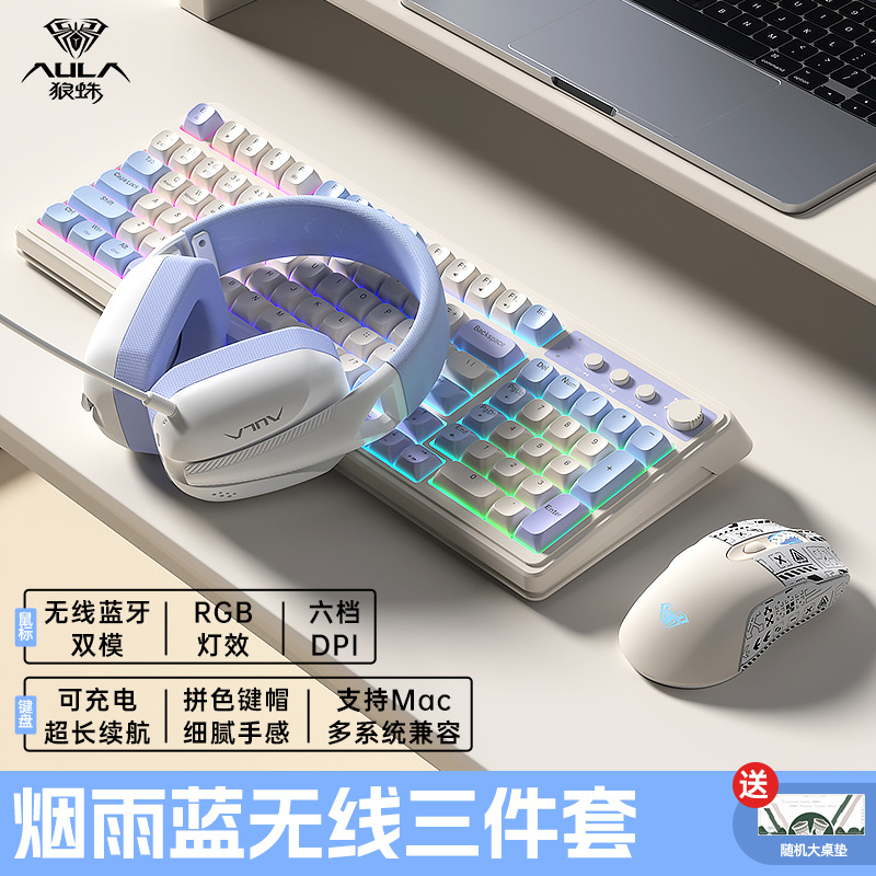 [Smoky rain Blue] keyboard and mouse headset suit