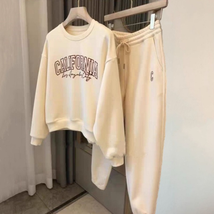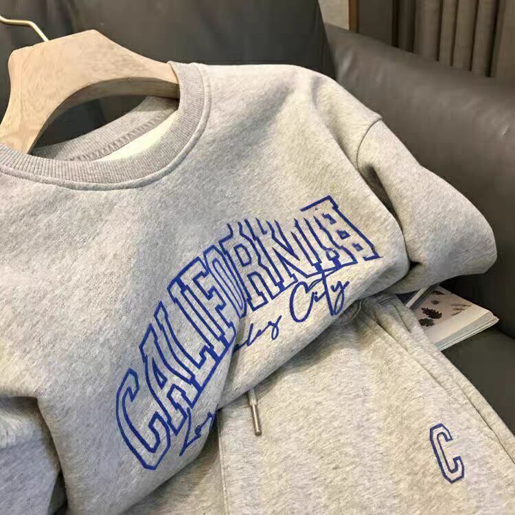 Casual Sports Suit for Women, Simple 2026 Spring and Autumn New Fashion Printed Loose Sweatshirt and Long Pants Two-Piece Set