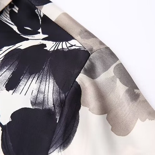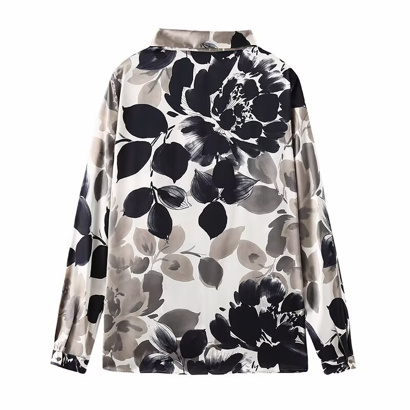 Foreign trade wholesale 2024 new ZA ladies European and American style flower printing loose silk satin texture shirt 2342114