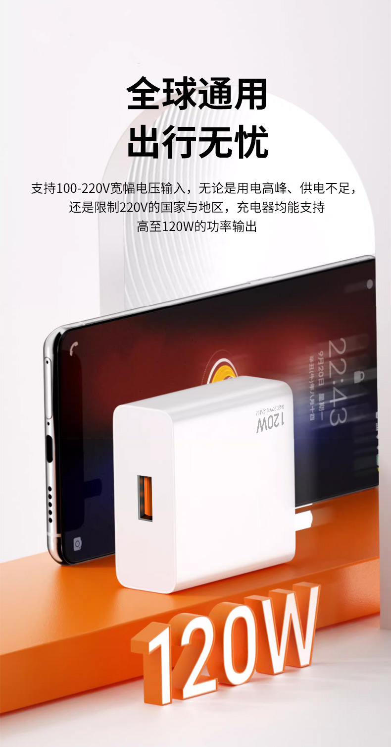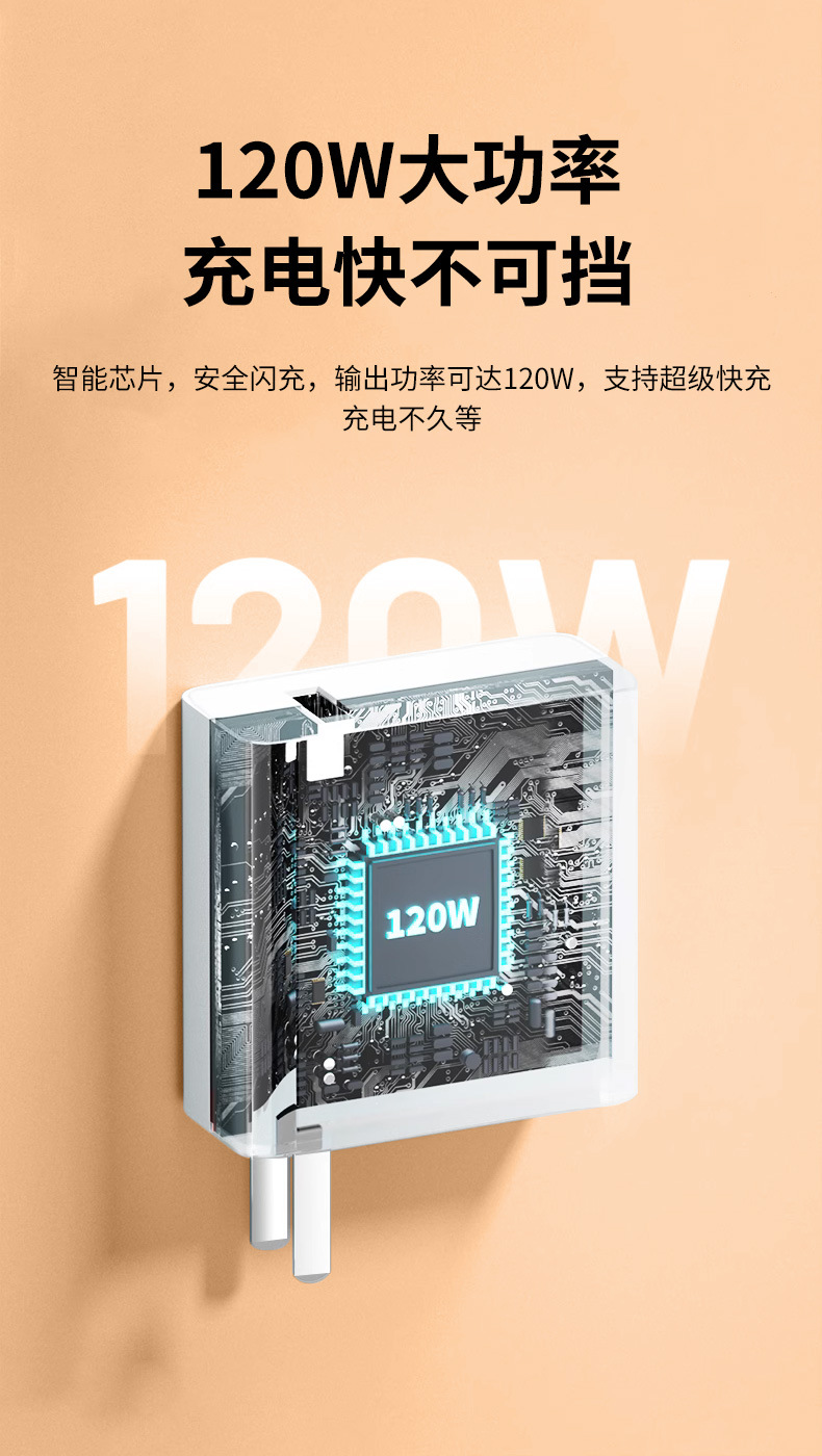 [Bare head] 3C certification is fully compatible with 120W flash charging head