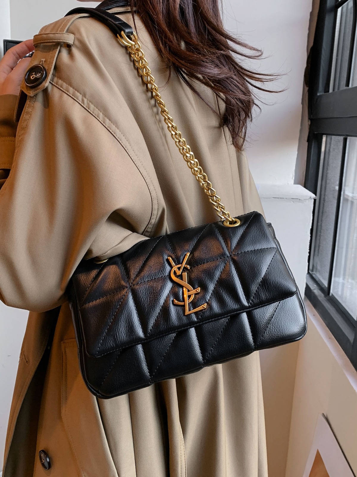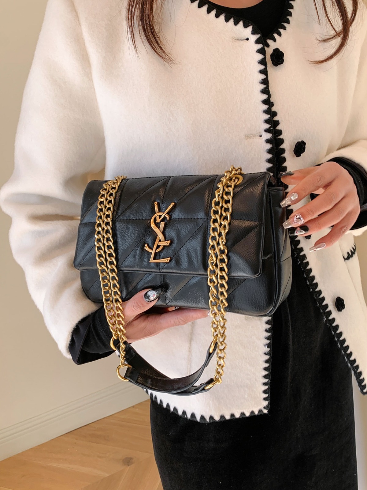 New Style Small Fragrant Rhombus Chain Bag, Fashionable and Versatile, Single Shoulder Armpit Bag, Large Capacity Cross-Body Bag, Light Luxury Embroidery Thread Bag