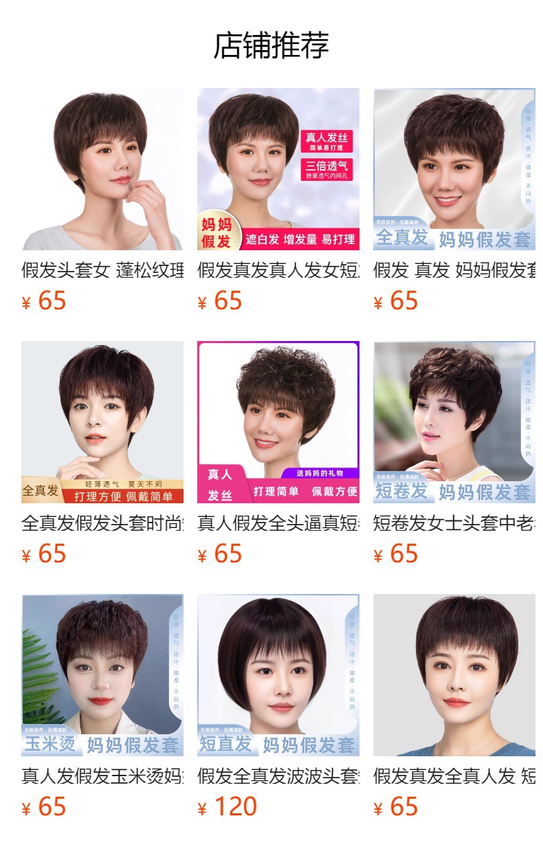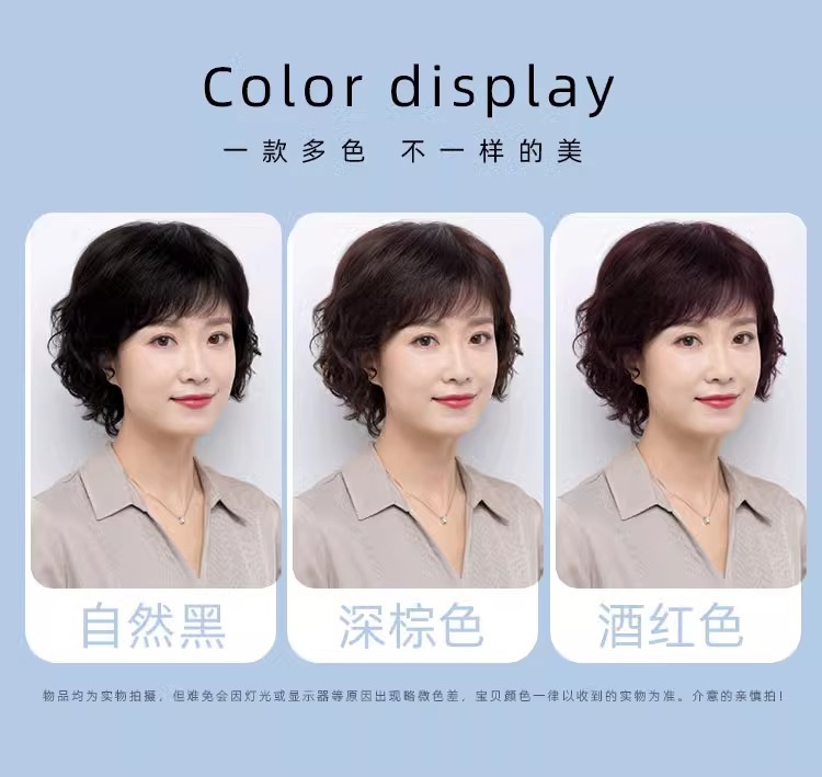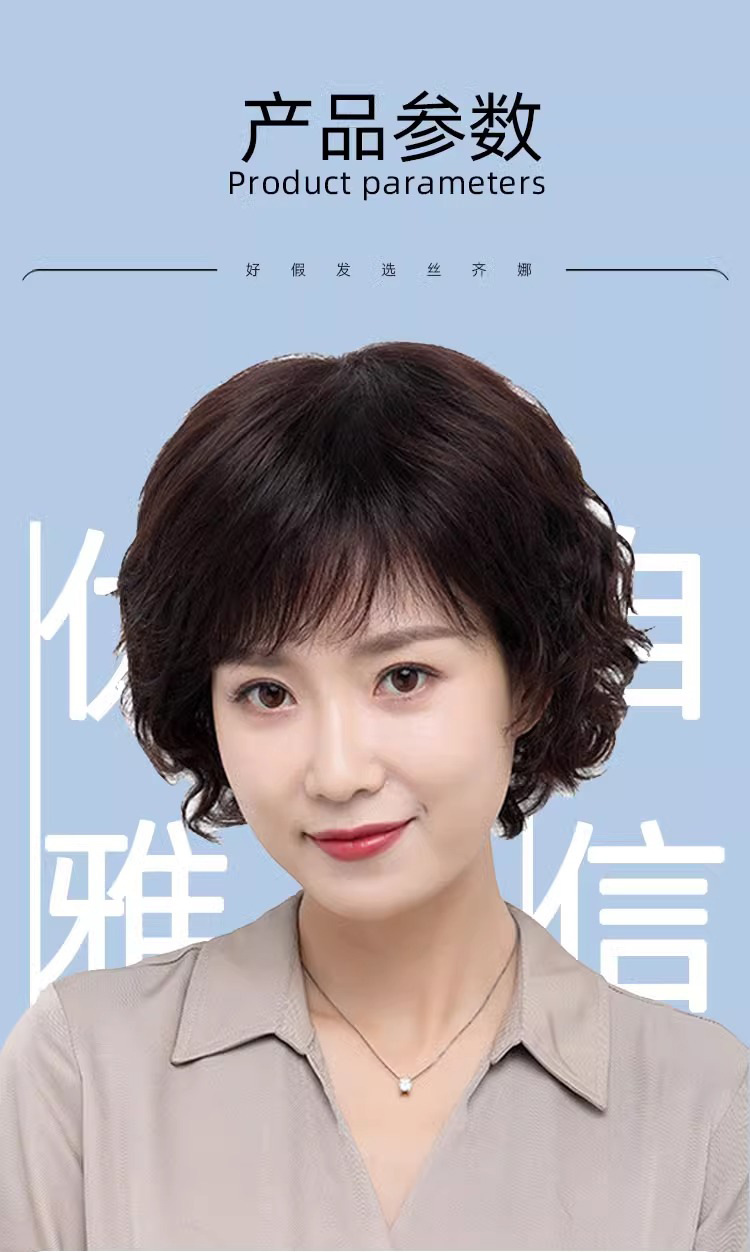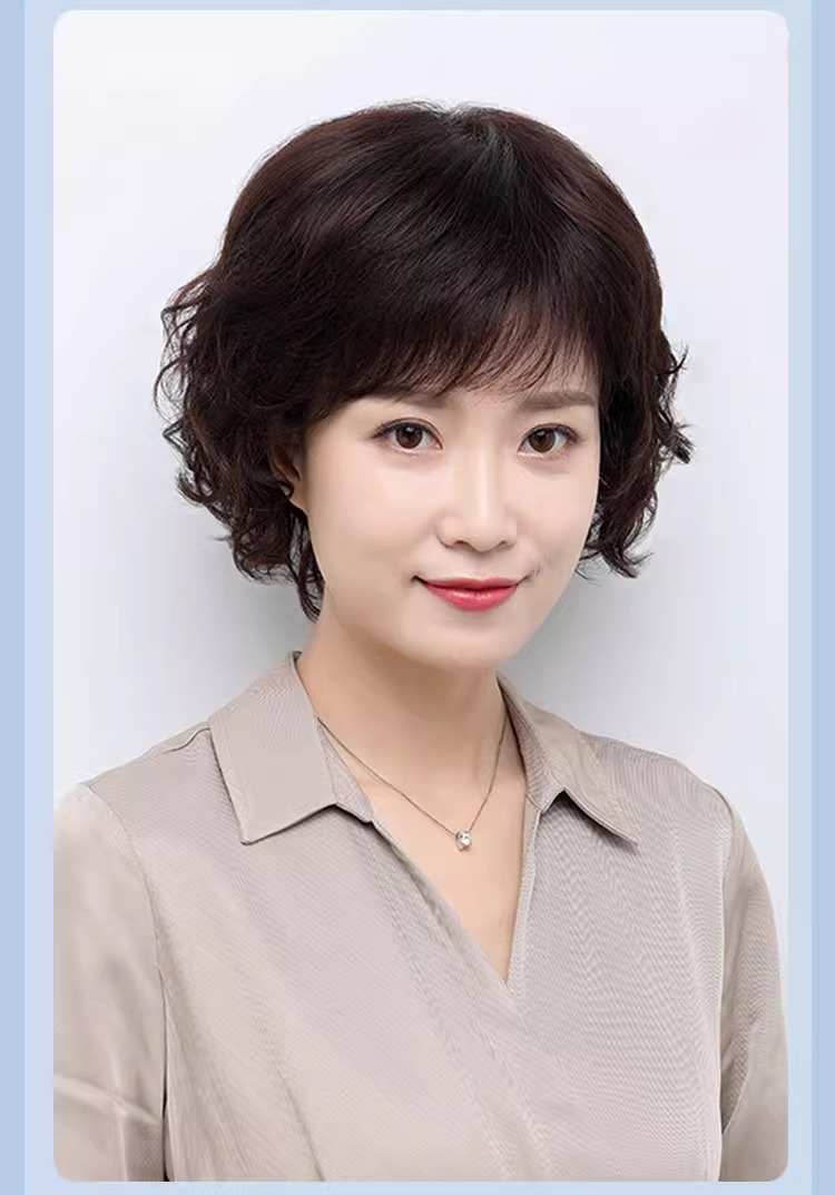Wig women's short hair women's real hair full top short curly hair fashion middle-aged and elderly mother wig full head real hair natural