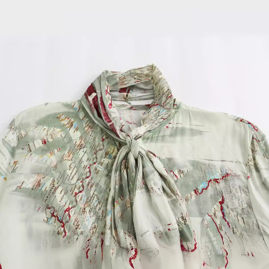 Foreign trade wholesale 2024 new ZA series women's bow printed shirt blouse blouse 2356008