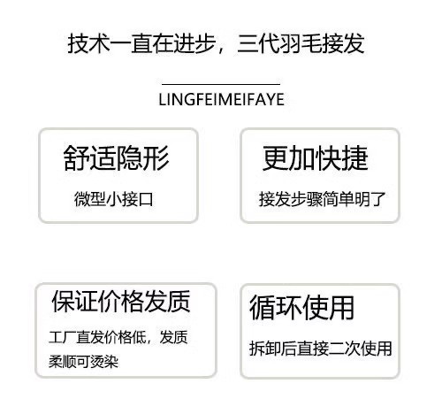 3代无折头羽毛接发 无碎发,接口更小,舒适度更高。