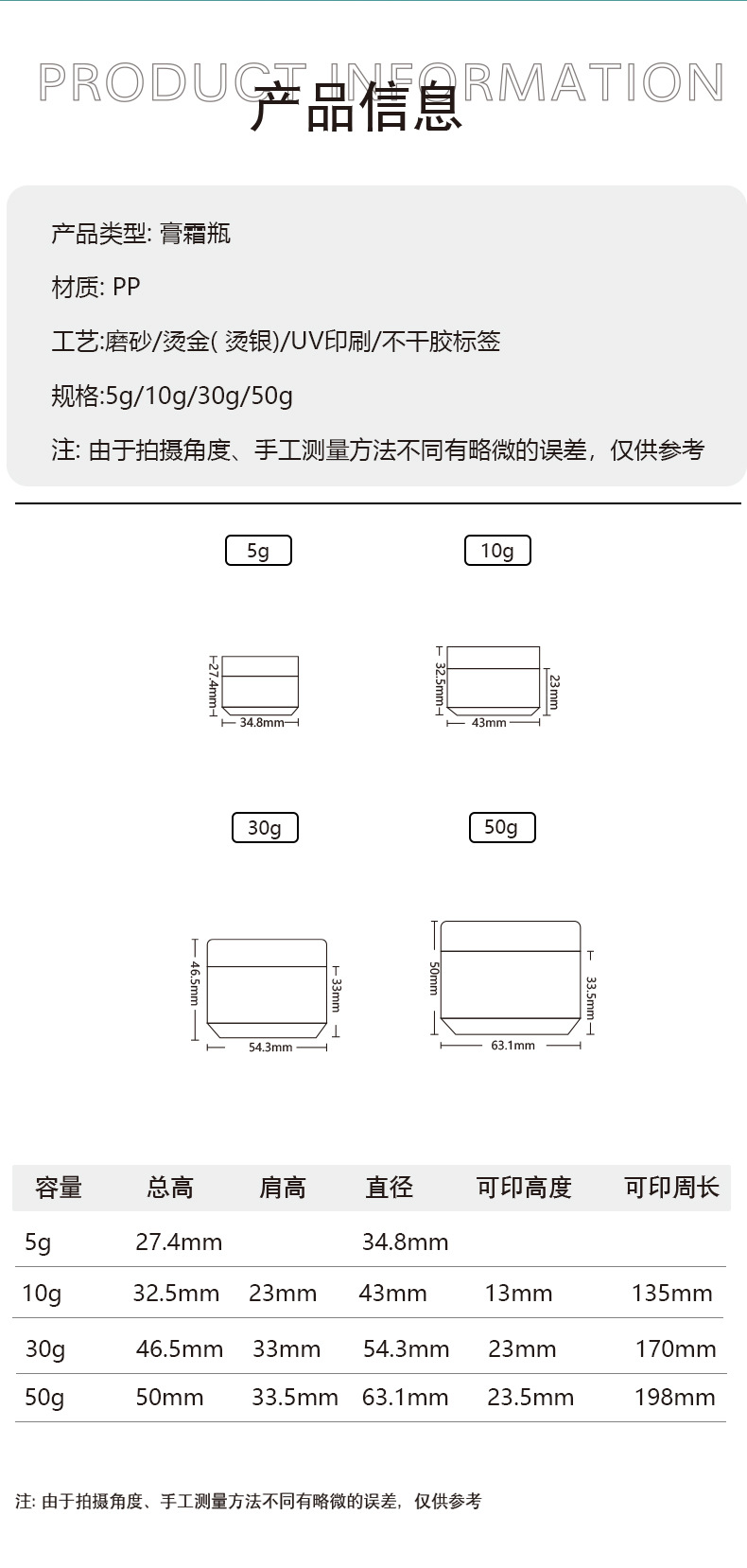 10g; White smooth surface; PP