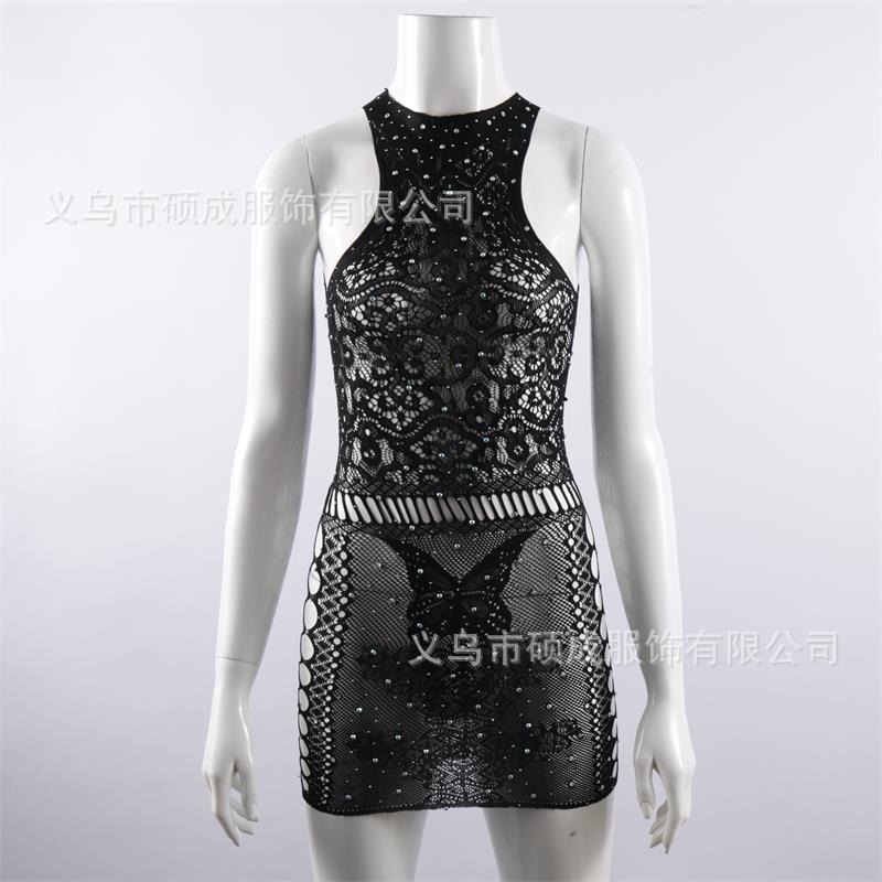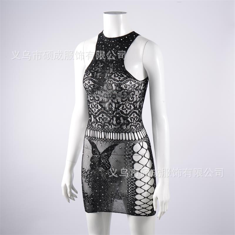 Cross-Border Sparkling Lingerie for Women, Princess-Style Hip-Hugging Mesh Skirt, Hollow-Out Mesh Jacquard Uniform, Seductive and Flirtatious Bra