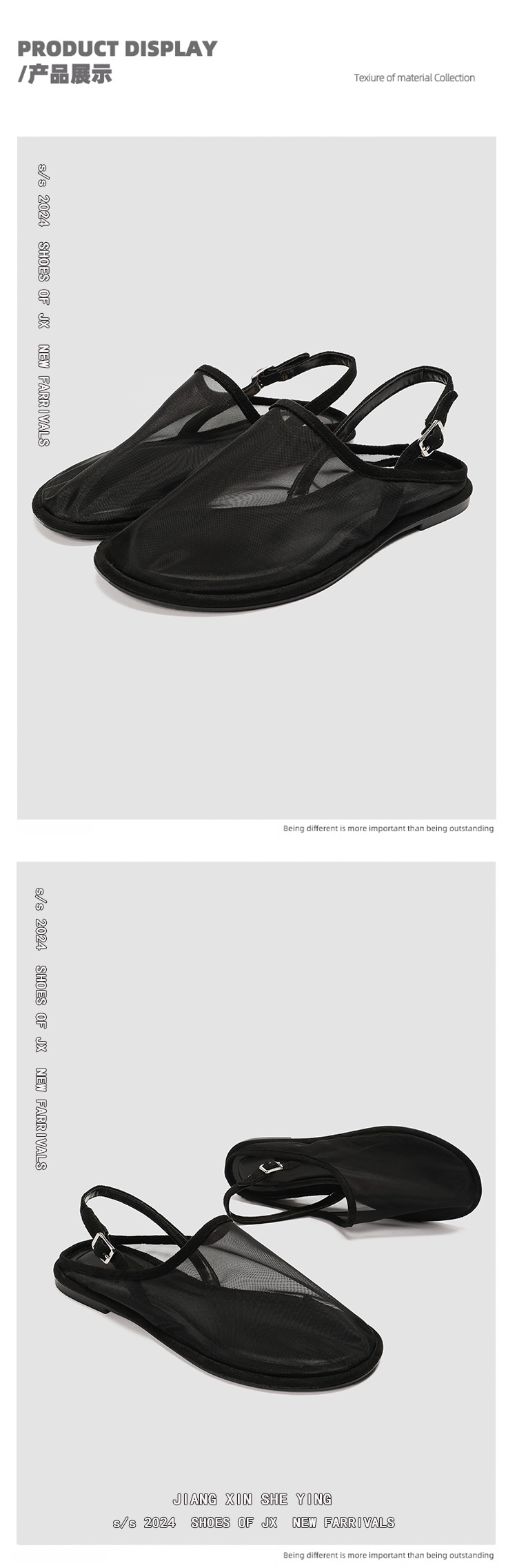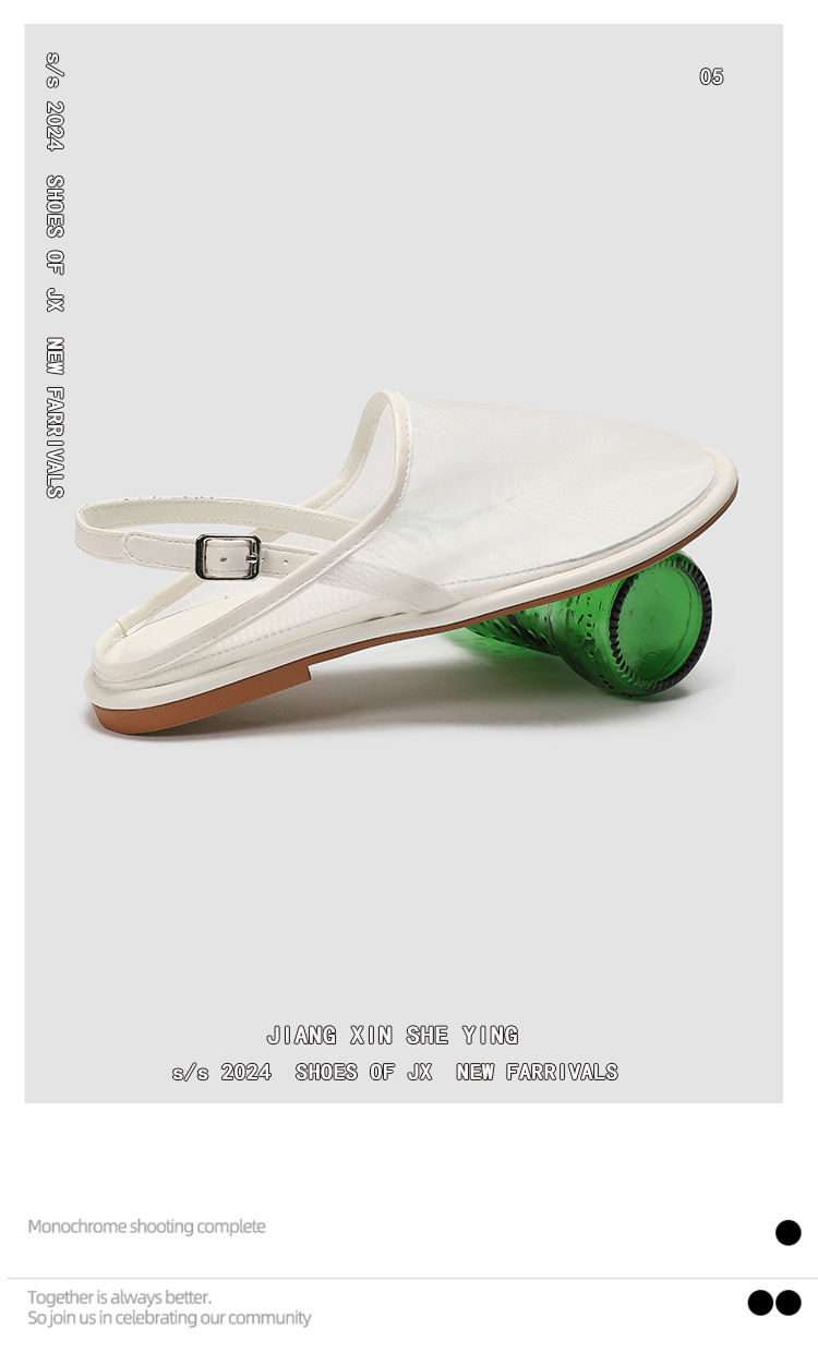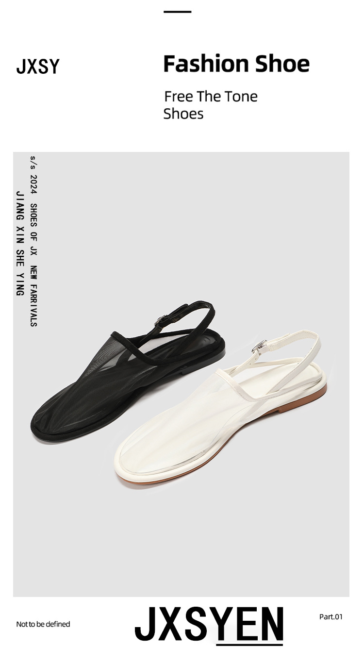 ZA women's mesh fabric round toe open heel flat casual mules shoes mesh breathable closed toe slippers sandals for women