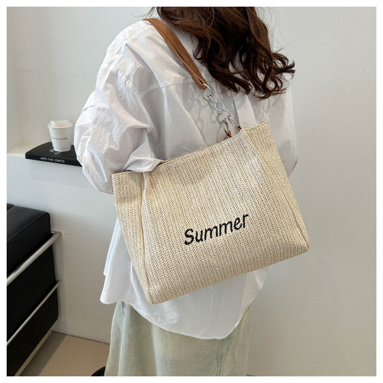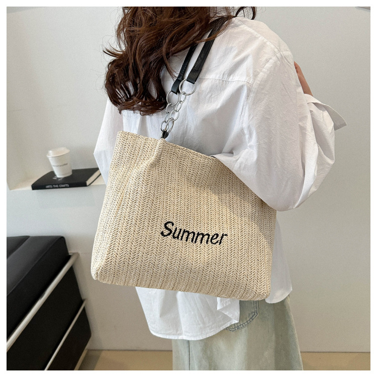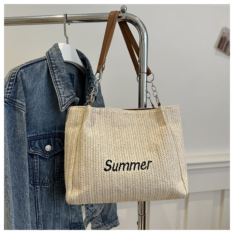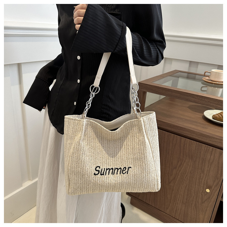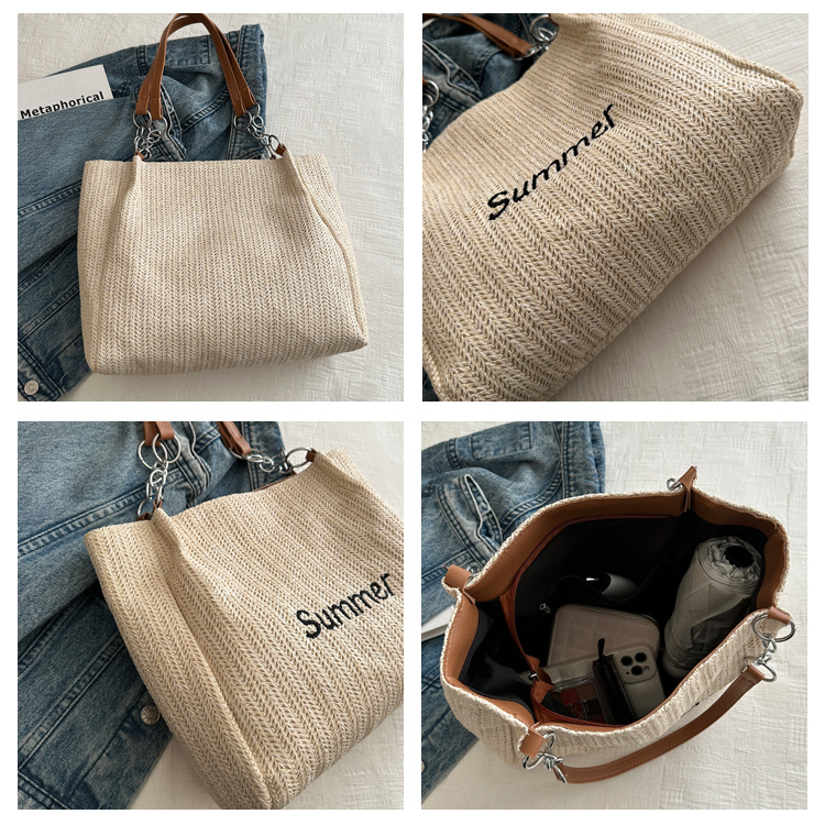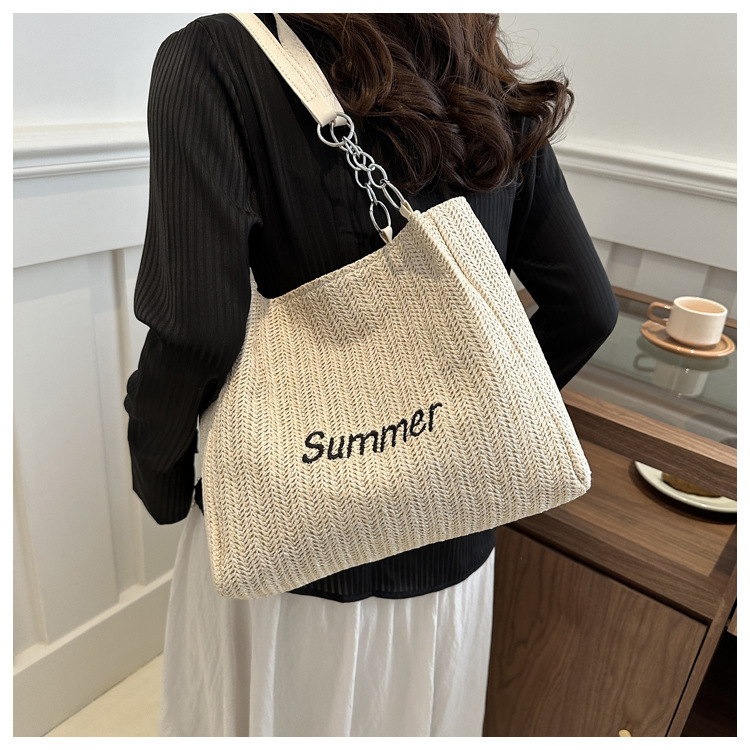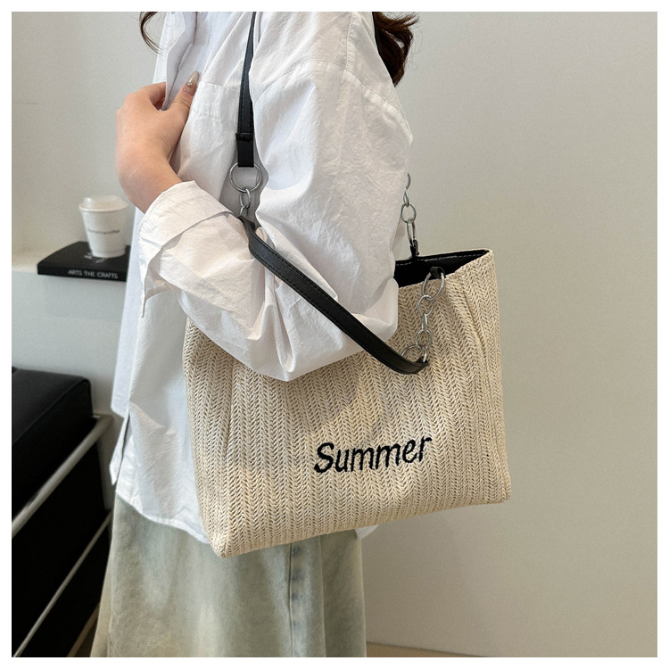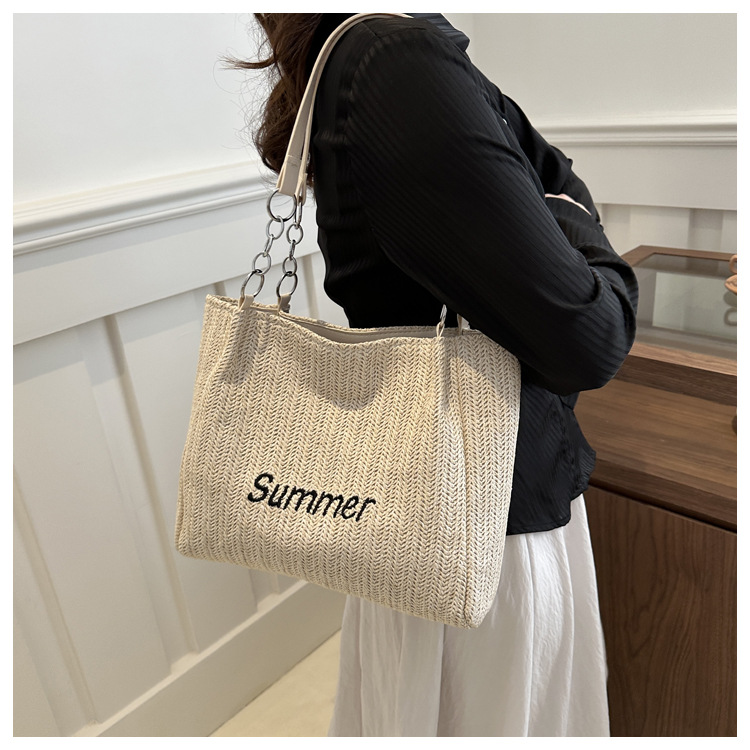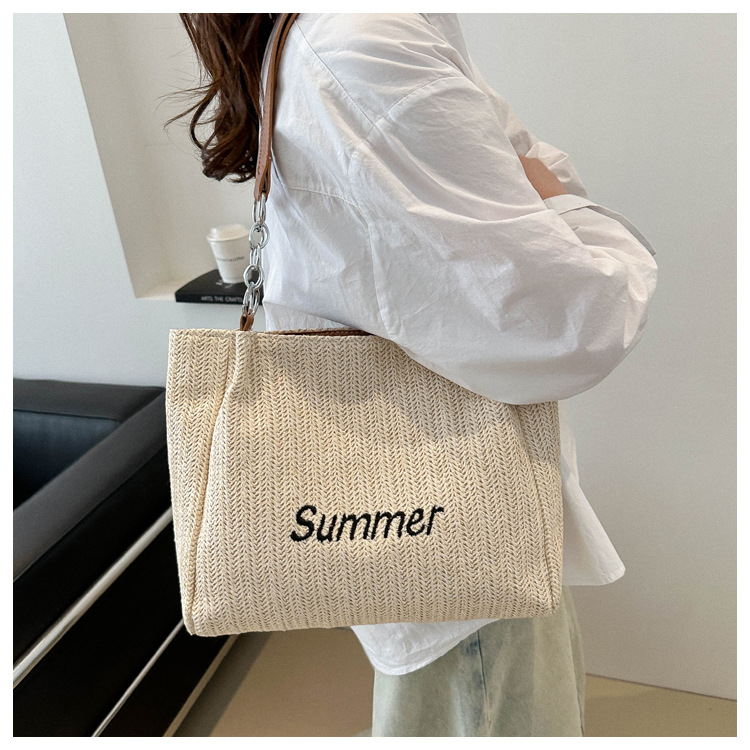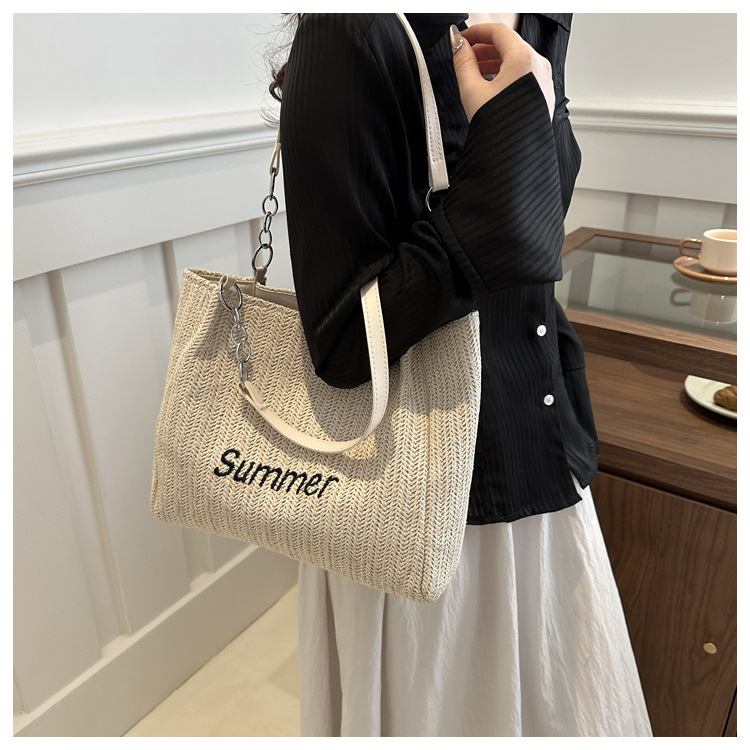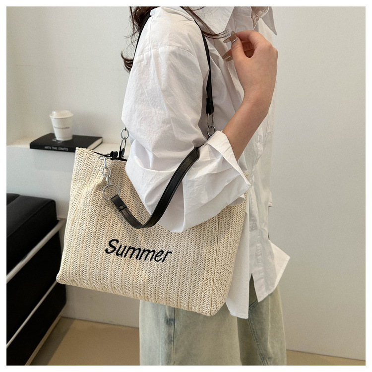 2026 New Versatile Woven Shoulder Bag, Fashionable Straw Lettered Large-Capacity Tote Bag, Commuter Handbag for Women