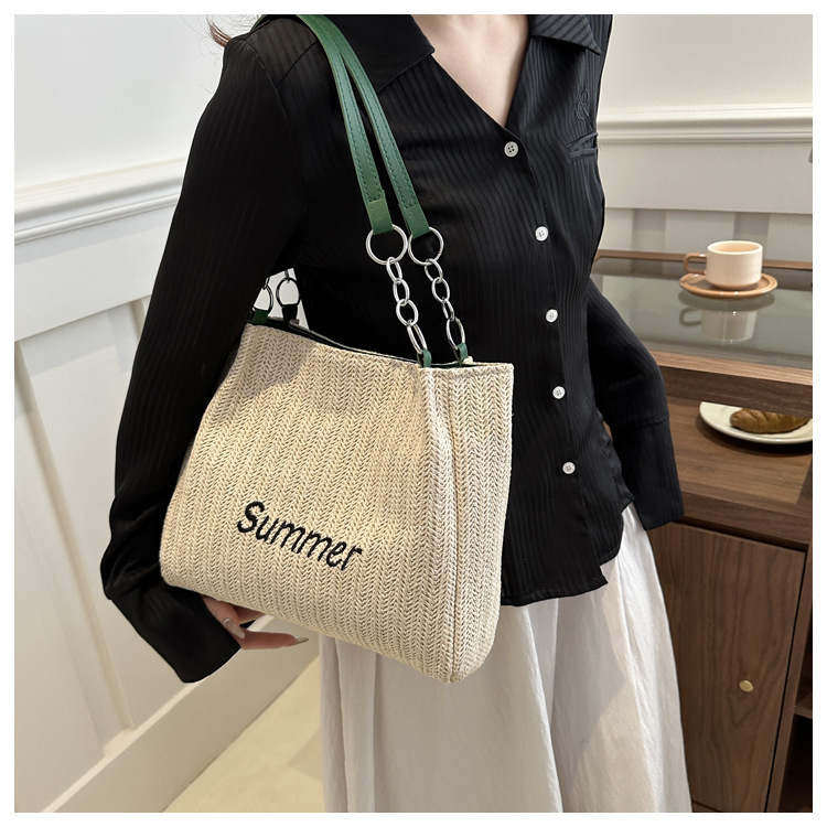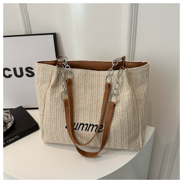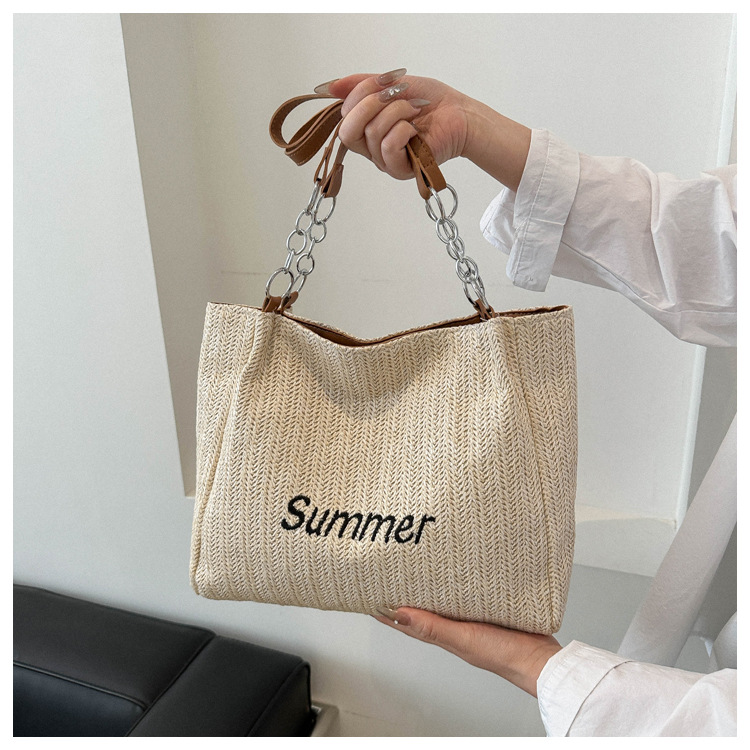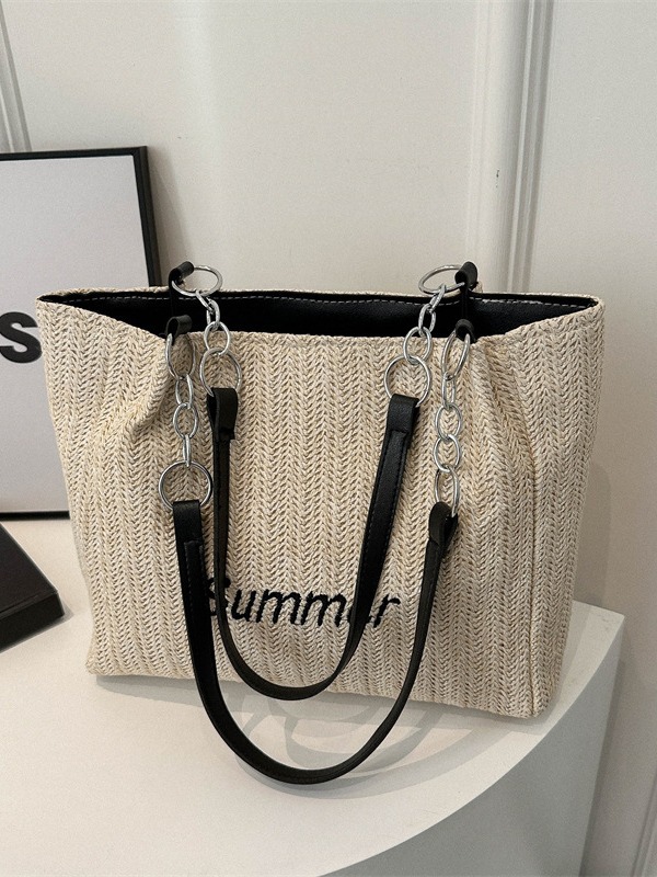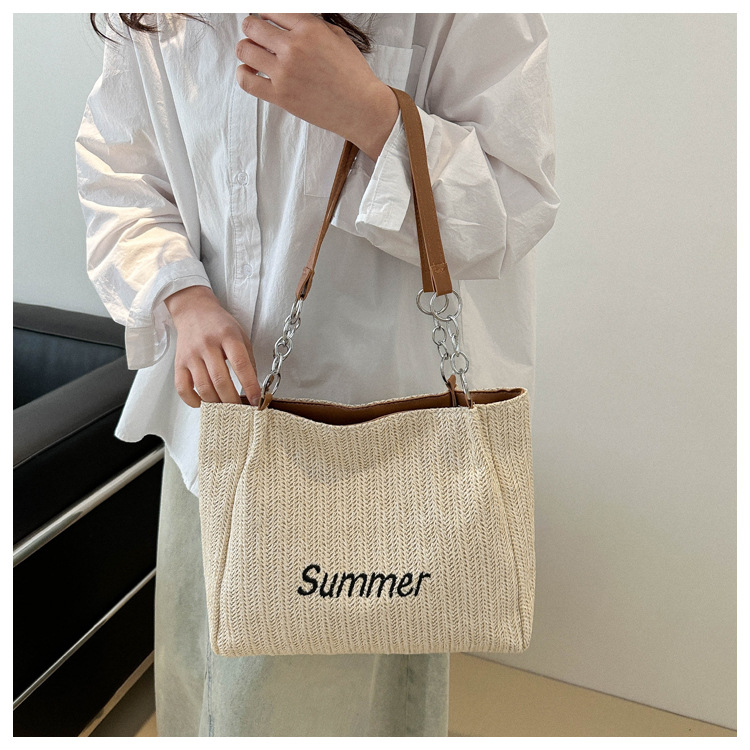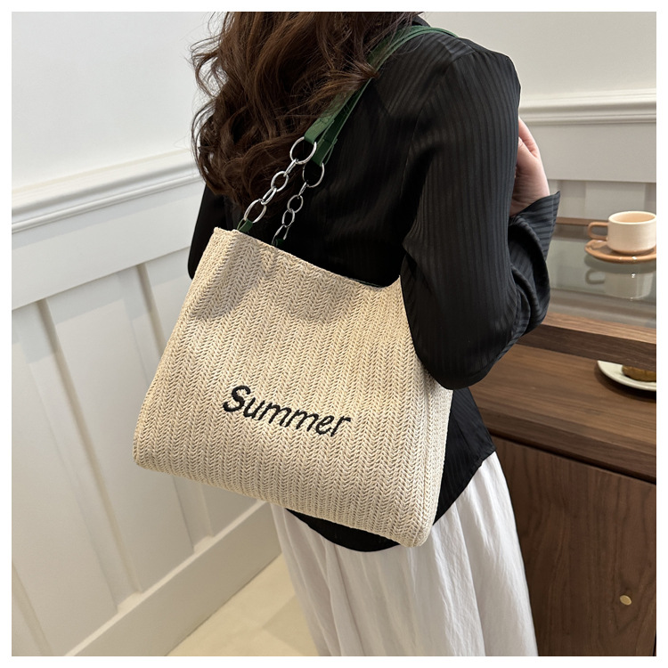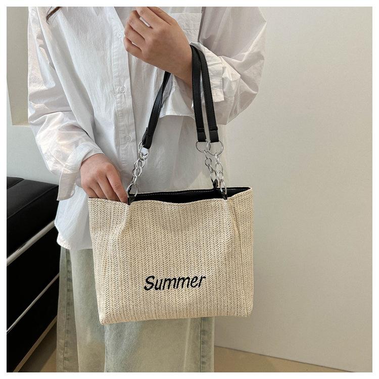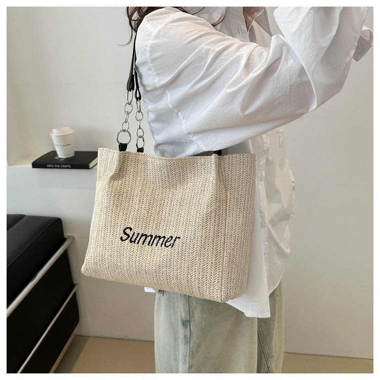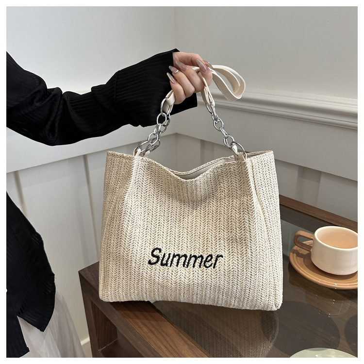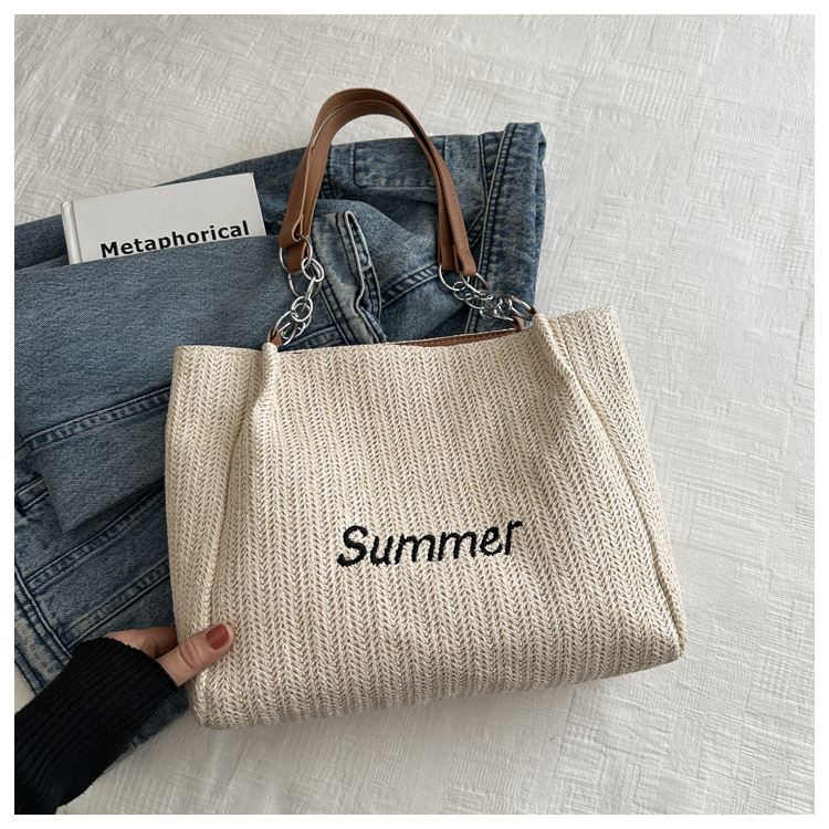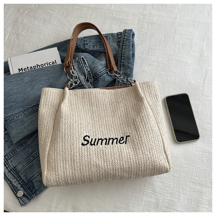 2026 New Versatile Woven Shoulder Bag, Fashionable Straw Lettered Large-Capacity Tote Bag, Commuter Handbag for Women