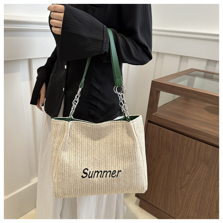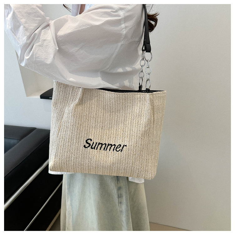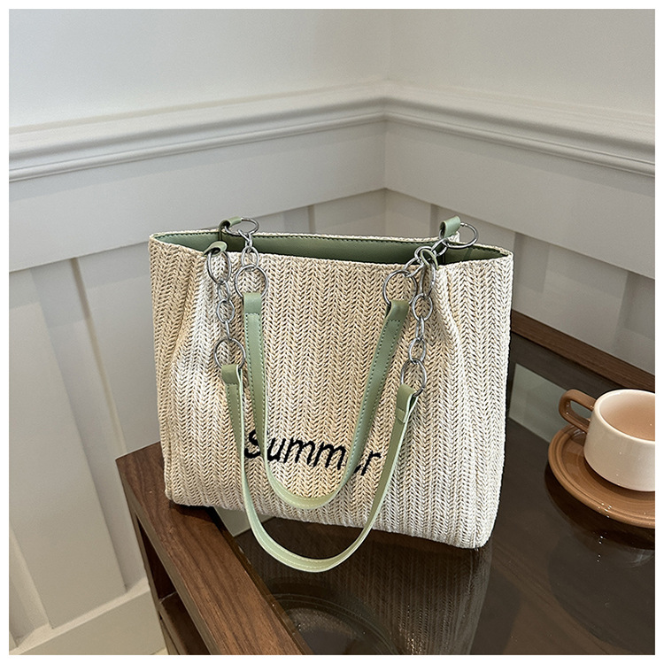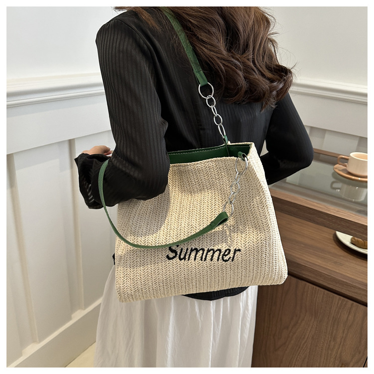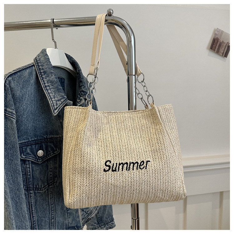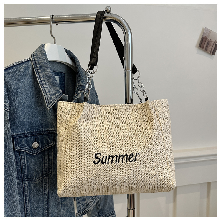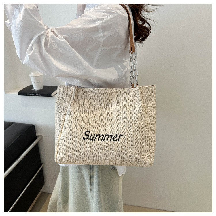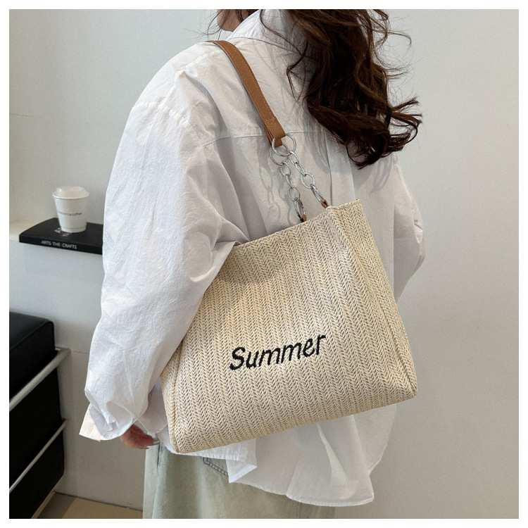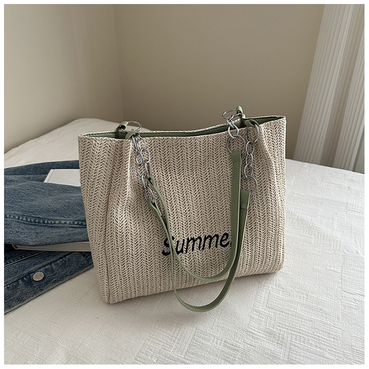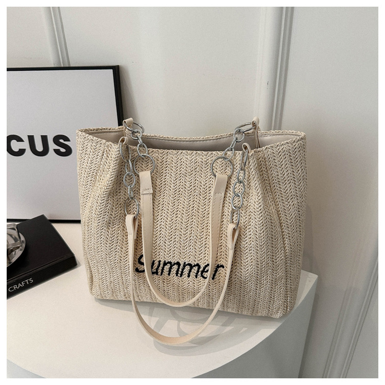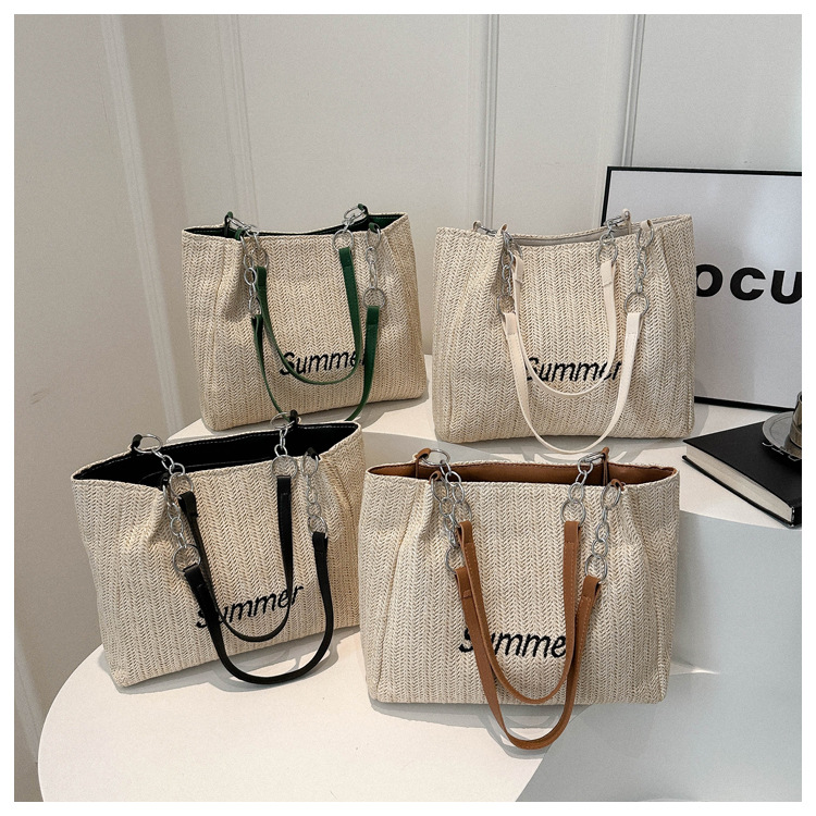 2026 New Versatile Woven Shoulder Bag, Fashionable Straw Lettered Large-Capacity Tote Bag, Commuter Handbag for Women