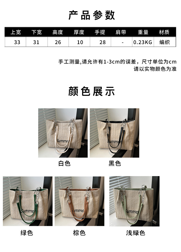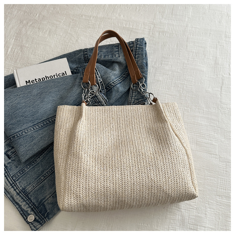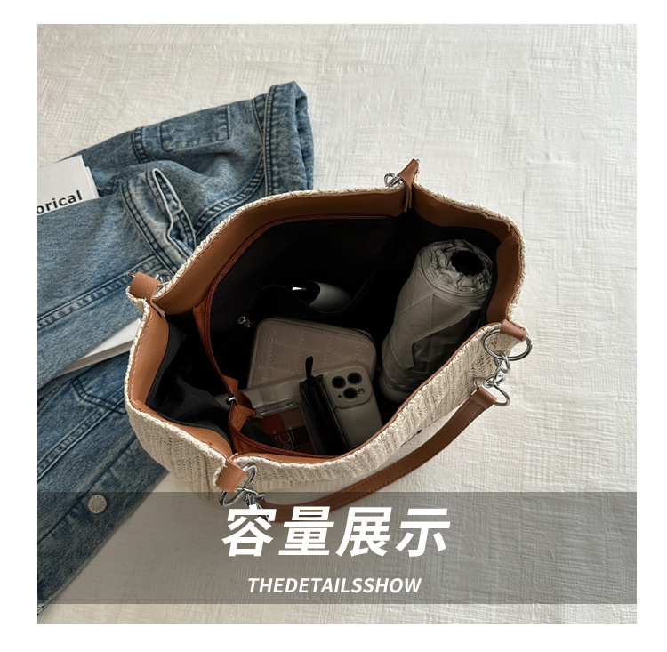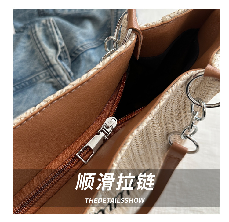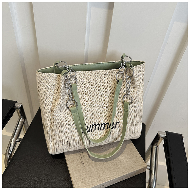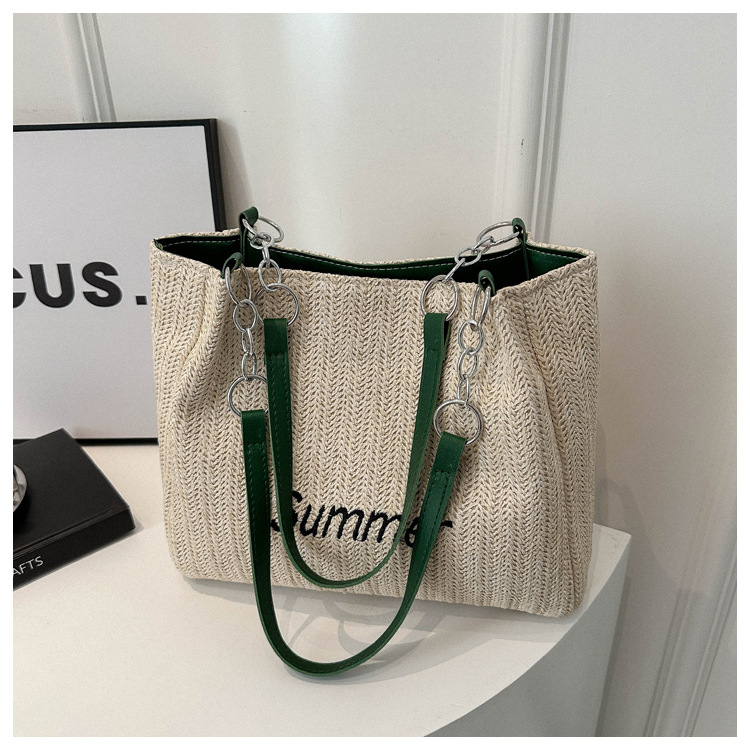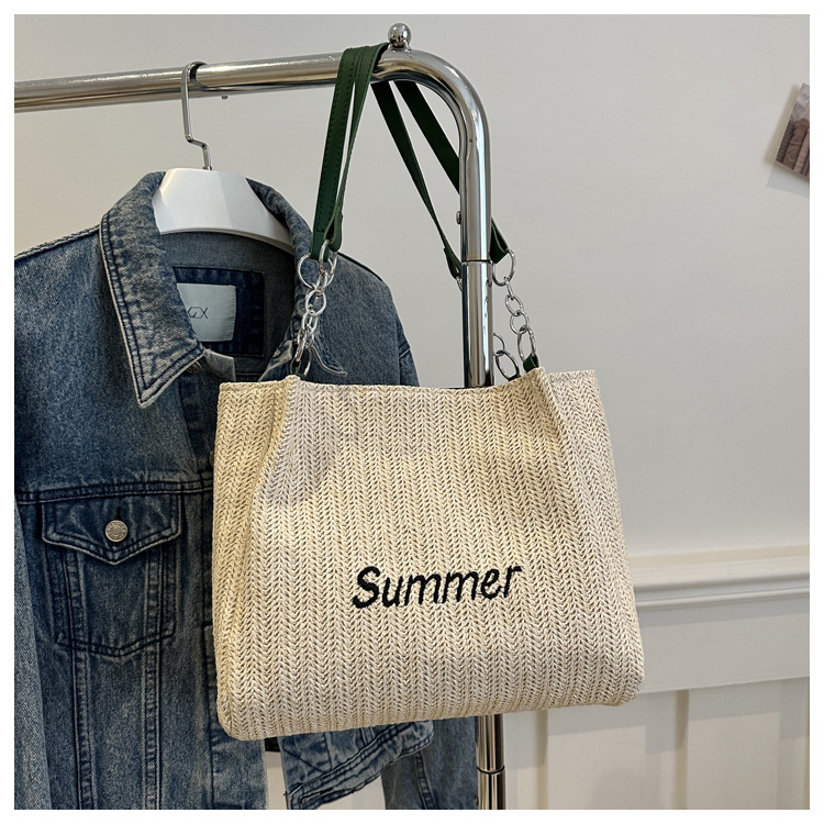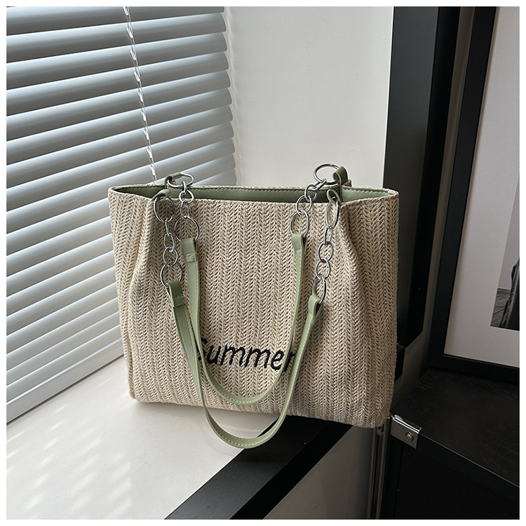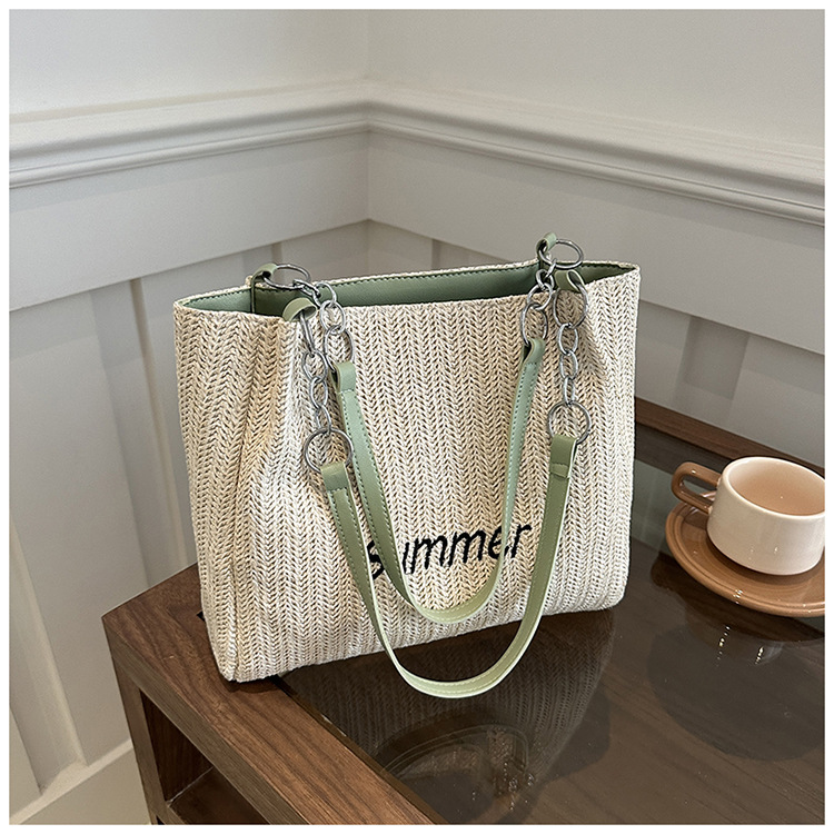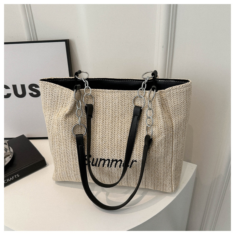 2026 New Versatile Woven Shoulder Bag, Fashionable Straw Lettered Large-Capacity Tote Bag, Commuter Handbag for Women