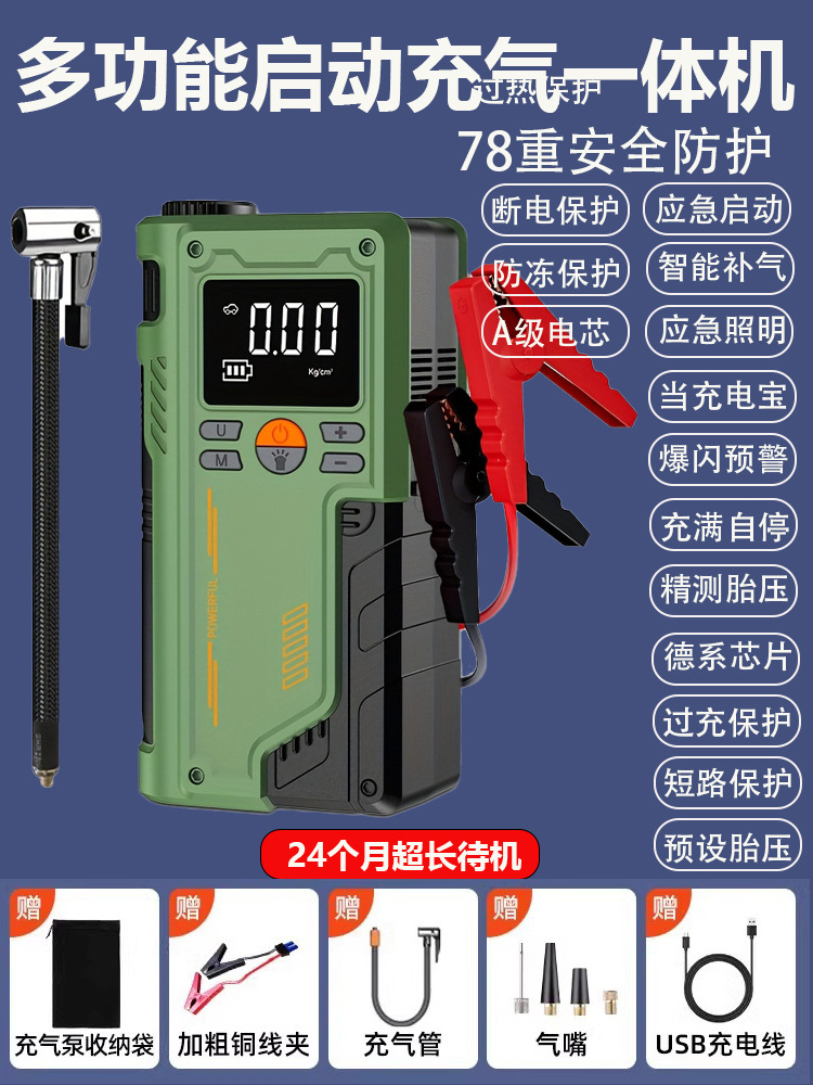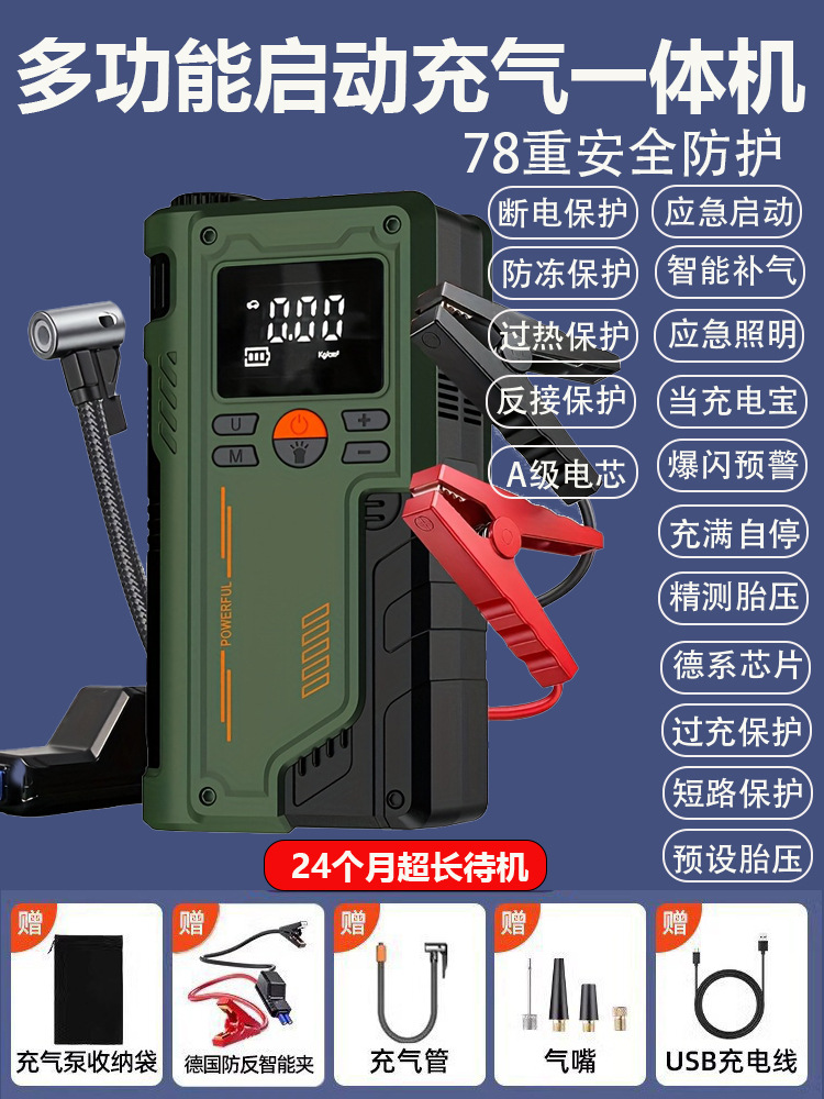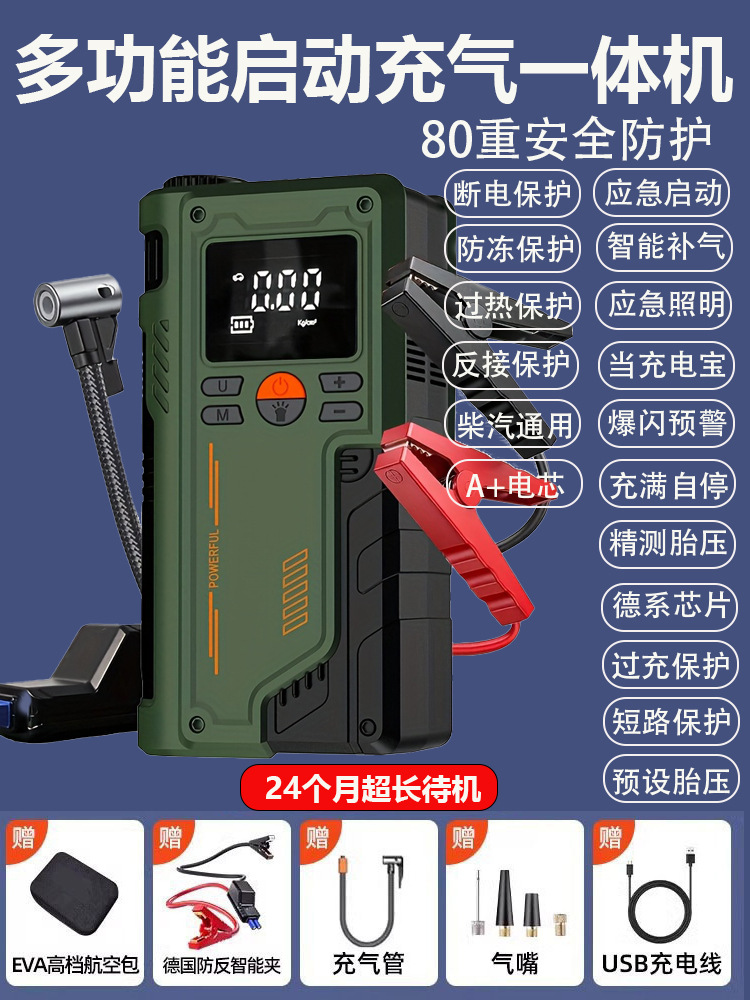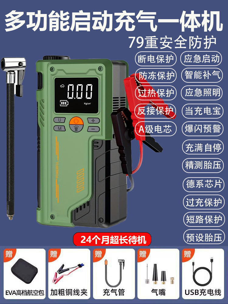 应急启动气泵一体机 聚合物电池14.8V,配智能电瓶夹