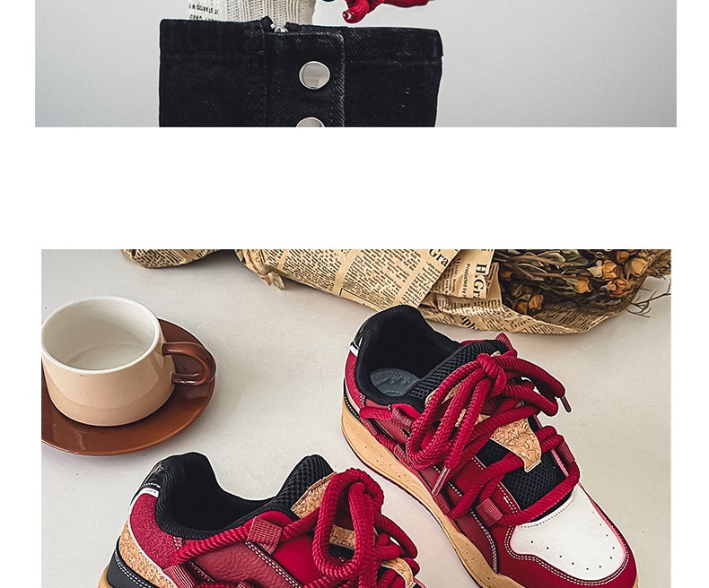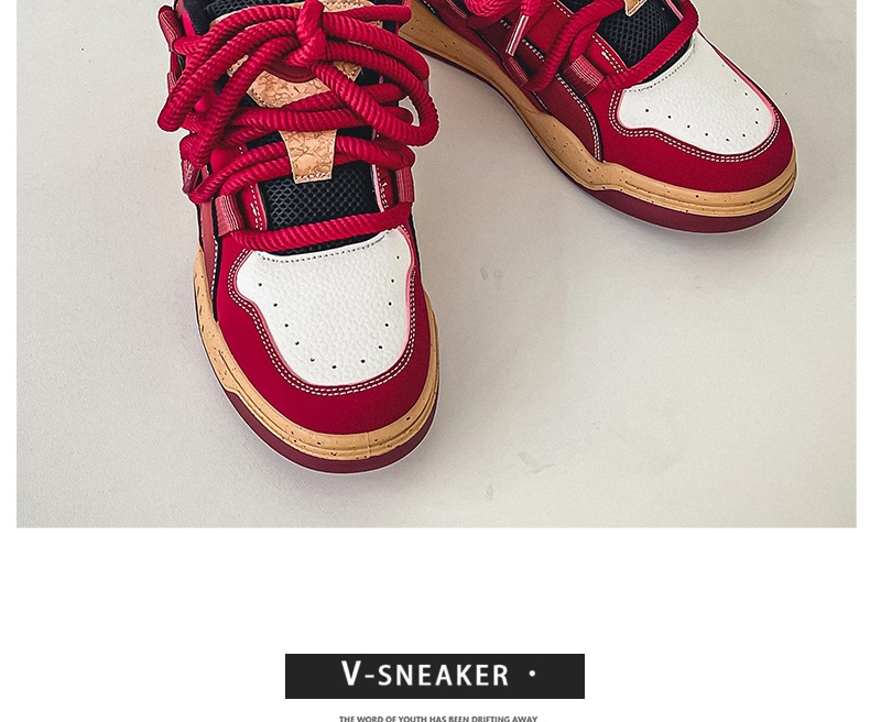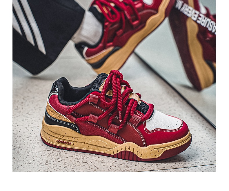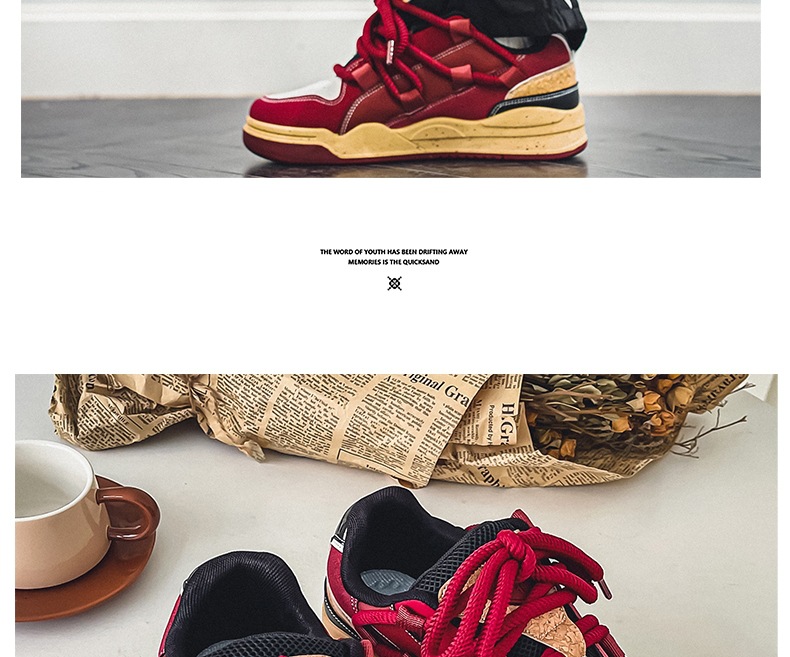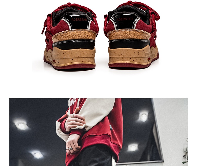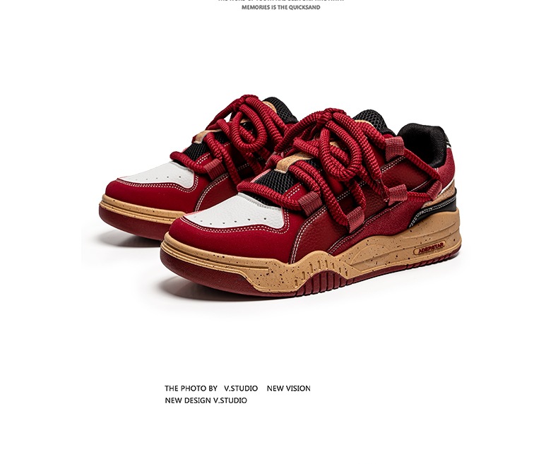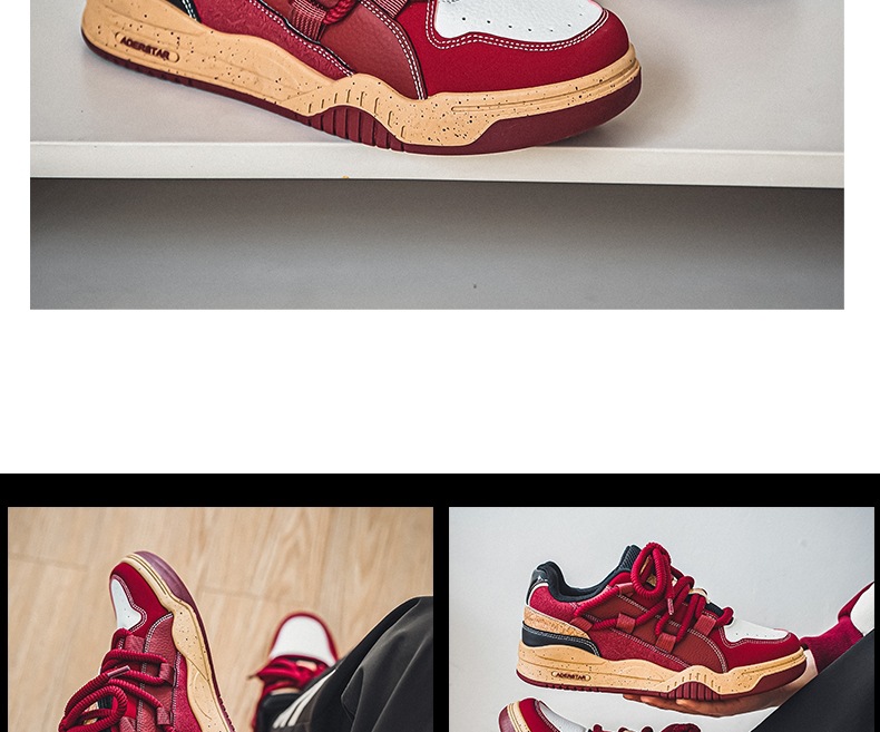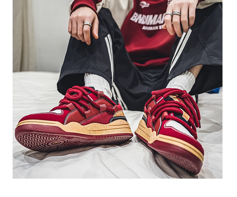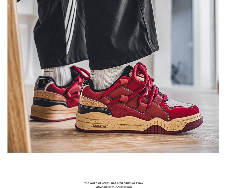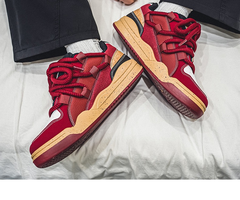 Men's Shoes 2024 New Niche Design Sense Wine Red Sneakers Trendy All-match Casual Sports Shoes Platform Bread Shoes