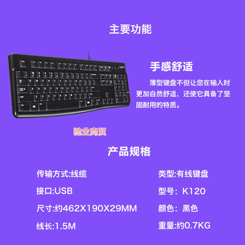 Logitech Logitech K120 wired membrane keyboard USB home office desktop computer waterproof mute