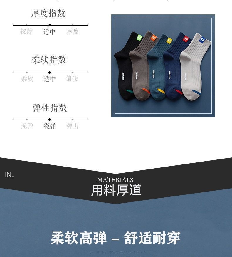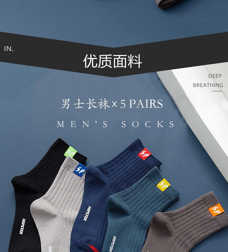 Socks for Men 2024 Spring & Fall New Mid-Calf Men's Socks Breathable Sweat-Absorbent Solid Color Casual Thick Deodorant Women's Sports Wholesale