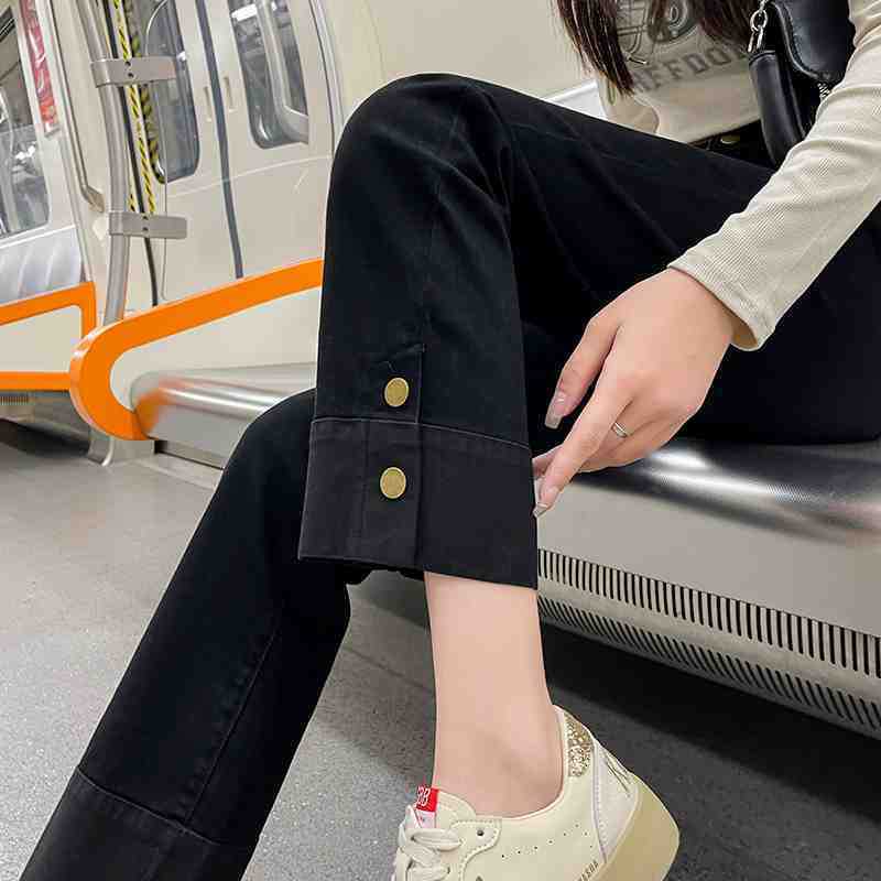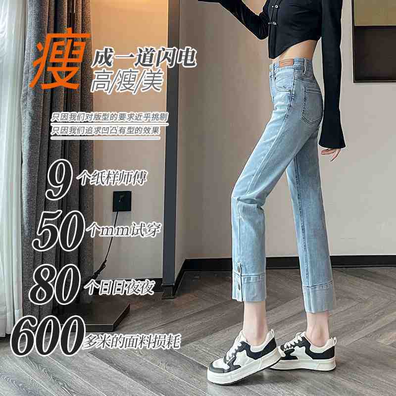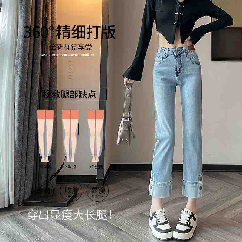 Light Blue Narrow Smoke Tube Jeans Women's Spring 2024 Stretch Cropped French-stick Straight Pants