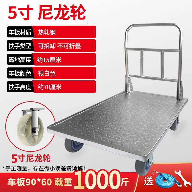 钢板小推车拉货手推车搬运车工用平板车便携拖车大号超重型手推车